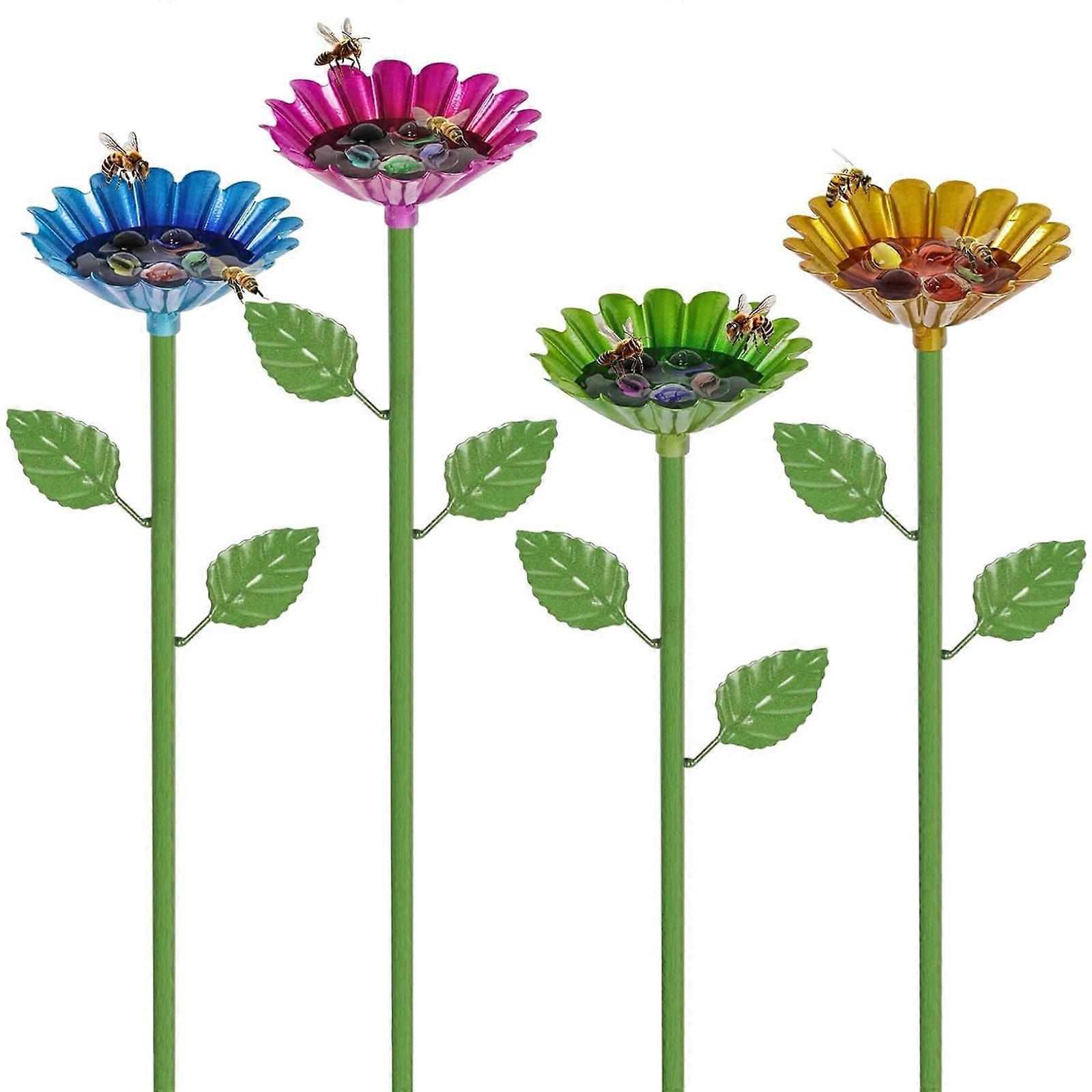 Outdoor Bird Bath Bowl with Bird Ornament for Garden Decors Sturdy Metal Construction Stable Prongs Base Multicolor
