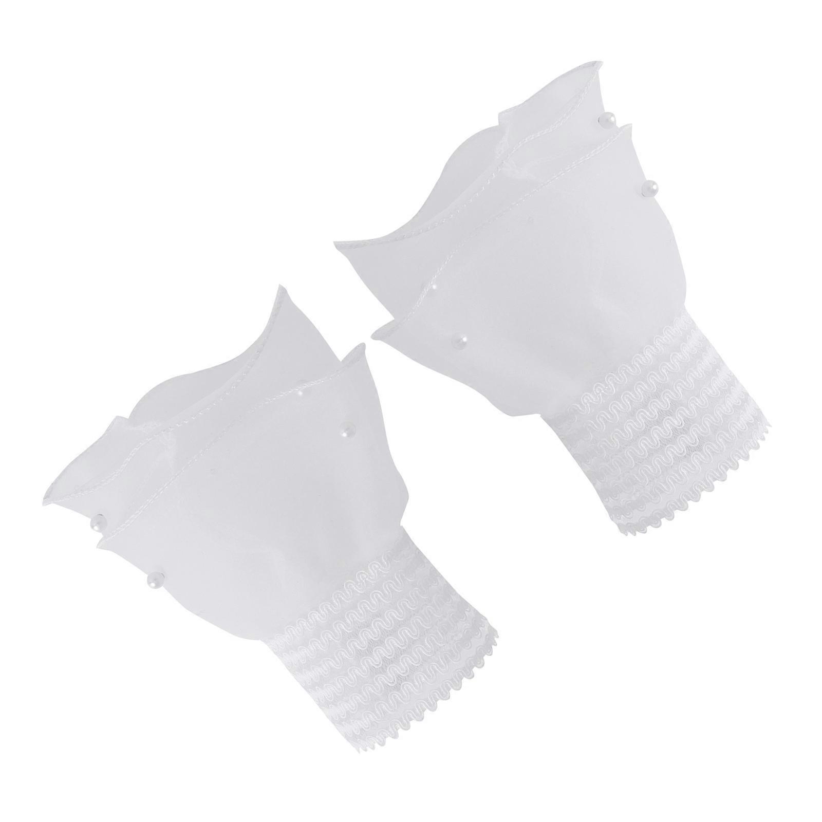 Handcrafted Sheer Lace Gloves Detachable Sleeve Extenders Pearls Beaded Layered Mesh Wrist Cuffs Lightweight Formal Wear White
