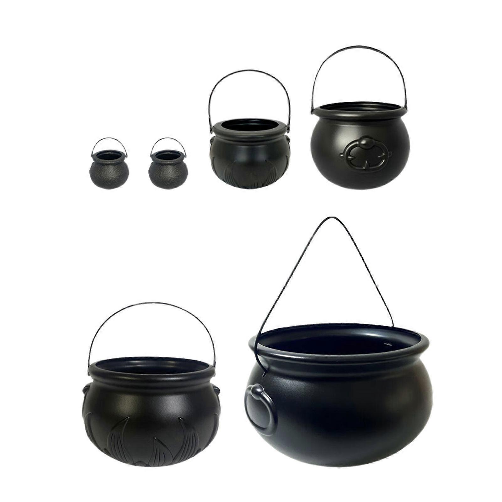 6 Piece Halloween Black Witch Cauldron Bucket Plastic Candy Container Bowl for Trick Or Treating Party Celebration Multicolor