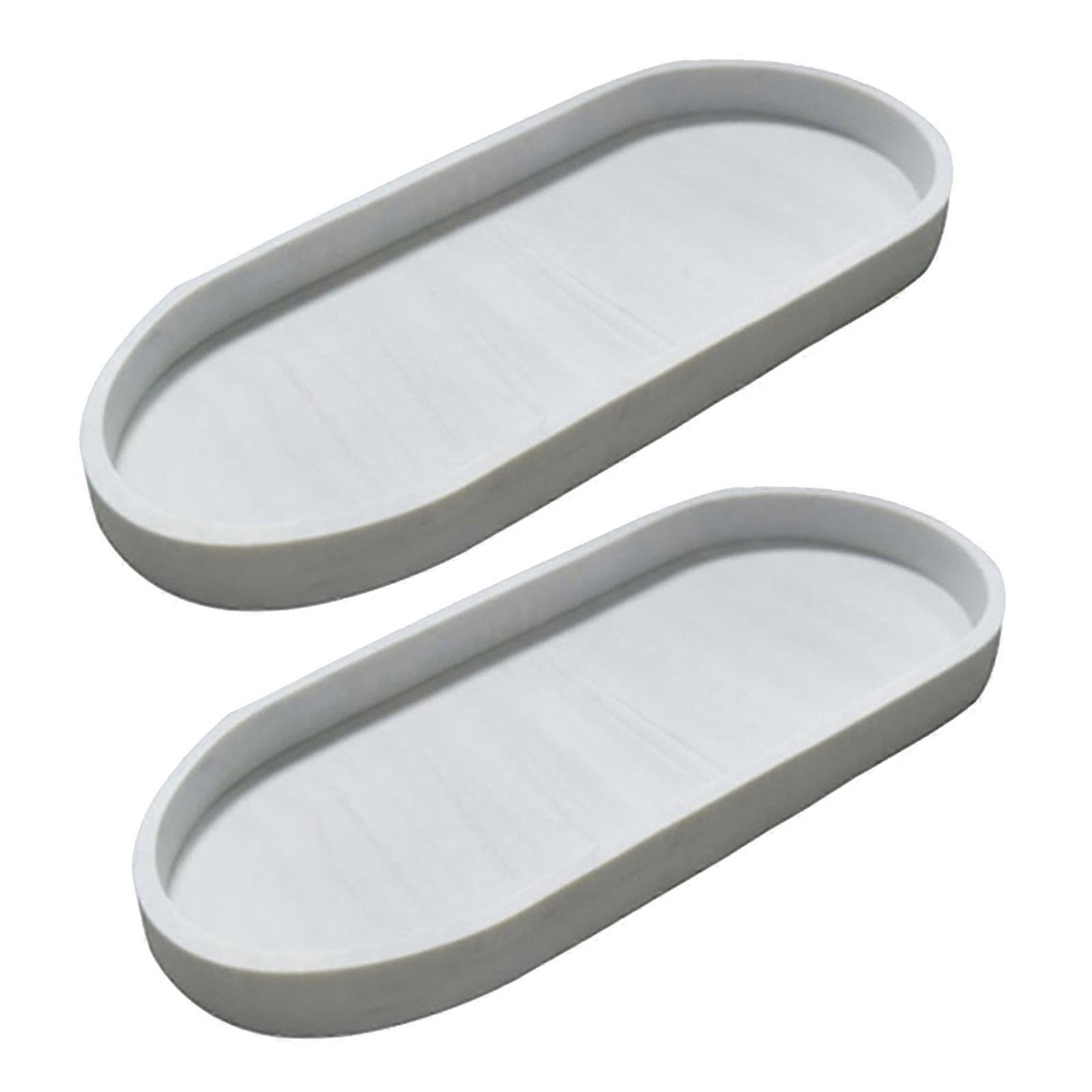 2pcs Silicone Storage Tray For Vanity Counter Organizing Toiletries Cosmetics Waterproof Bathroom Shelf White