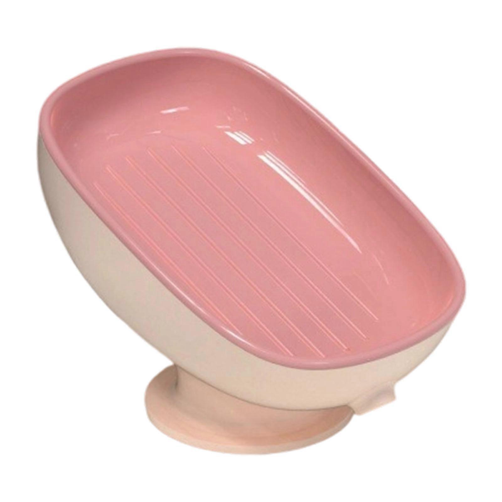 Creative Bathroom Soap Dish with Simple Tray Draining Easy to Install Quick Drainage Suction Cup Soap Tray Pink
