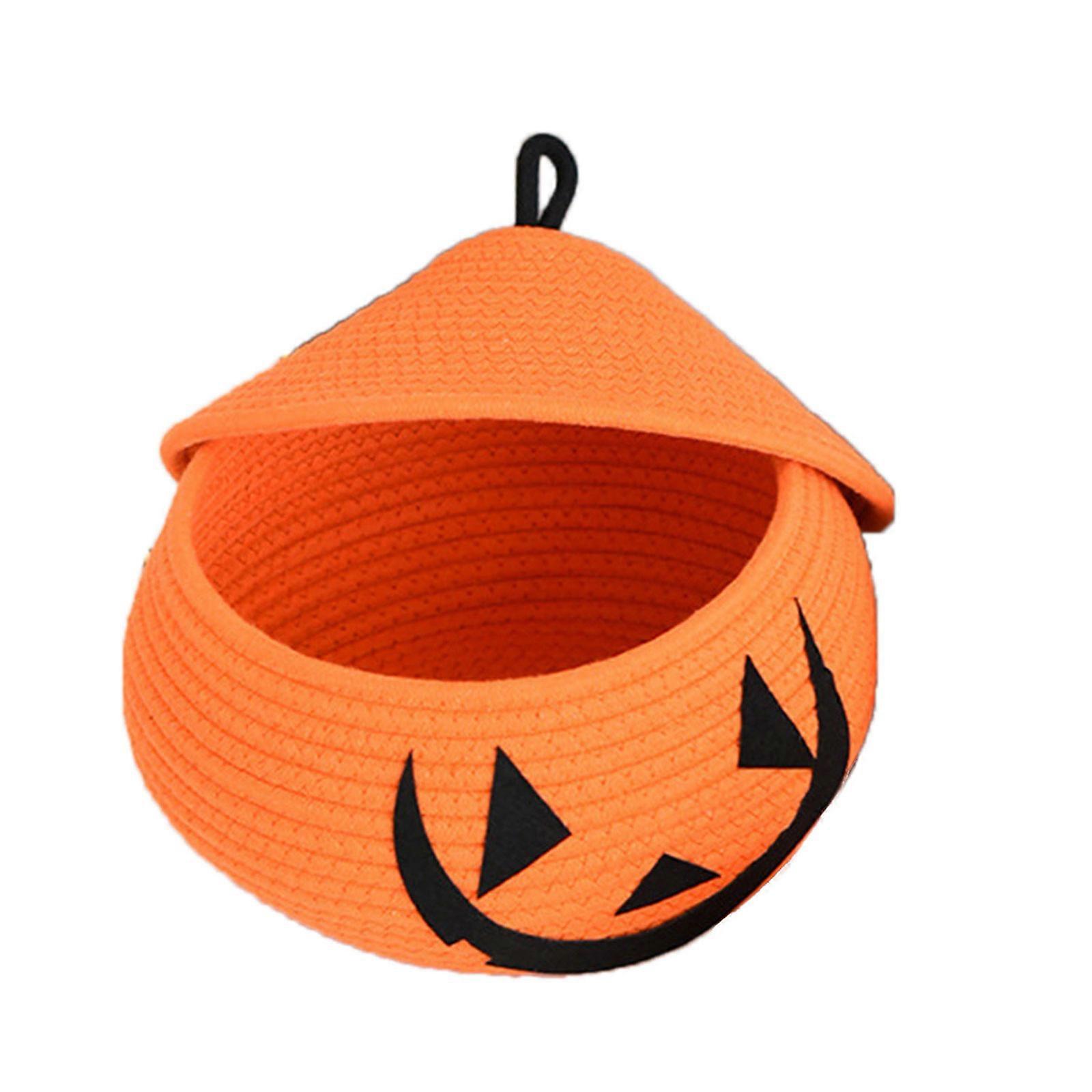 Natural Cotton Cord Woven Halloween Tabletop Storage Bin With Cover Pumpkin Themed Home Organization Solution XL