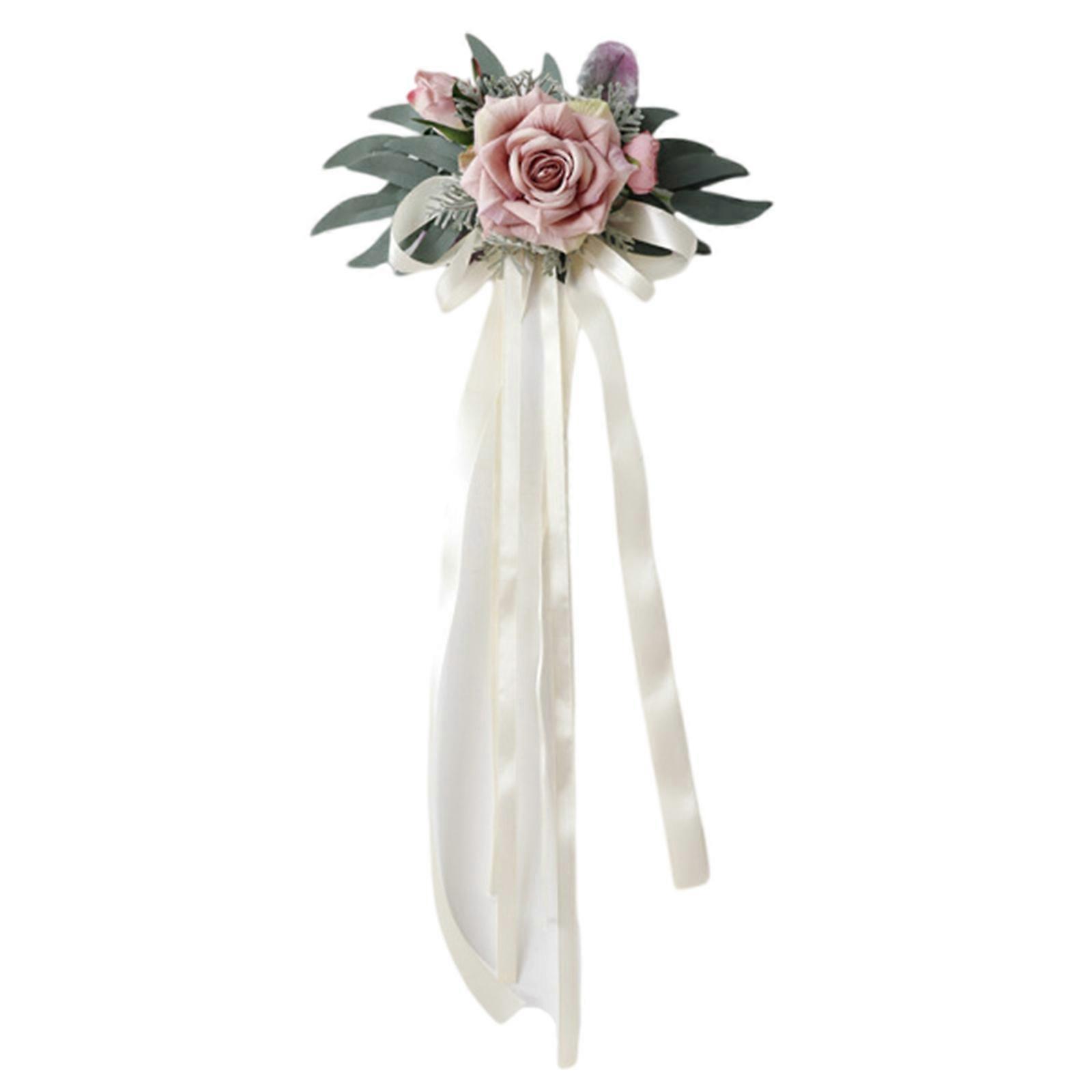 Elegant Rose Flower Wedding Car Decoration Bowknot Artificial Flower Romance Atmosphere For Newlyweds Event Planners Buttercream powder