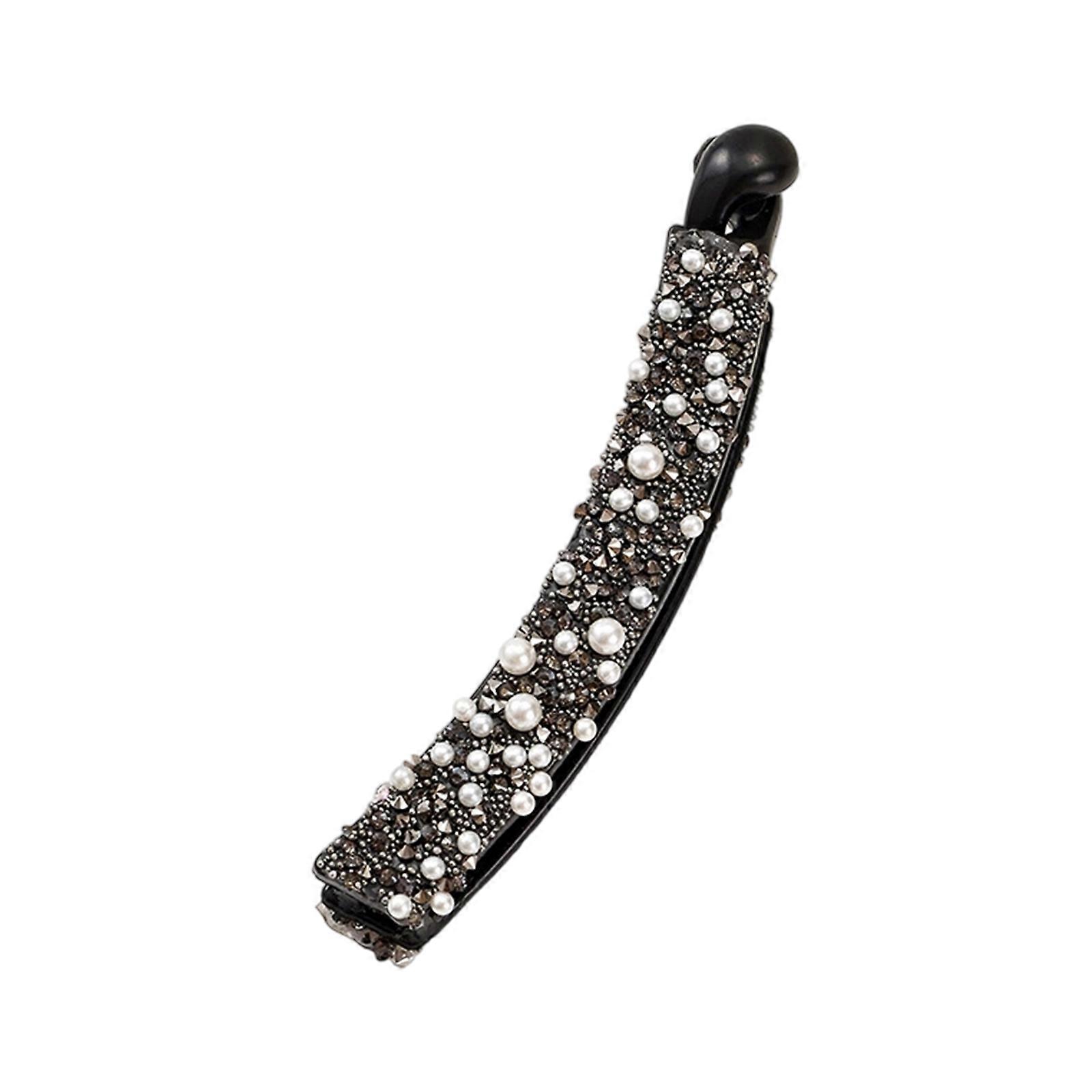 Rhinestones Beads Hair Clip Comfortalbe Banana Hairpiece Styling Hairpin Hair Accessories for Creating Voluminous Styles Black diamond pearls