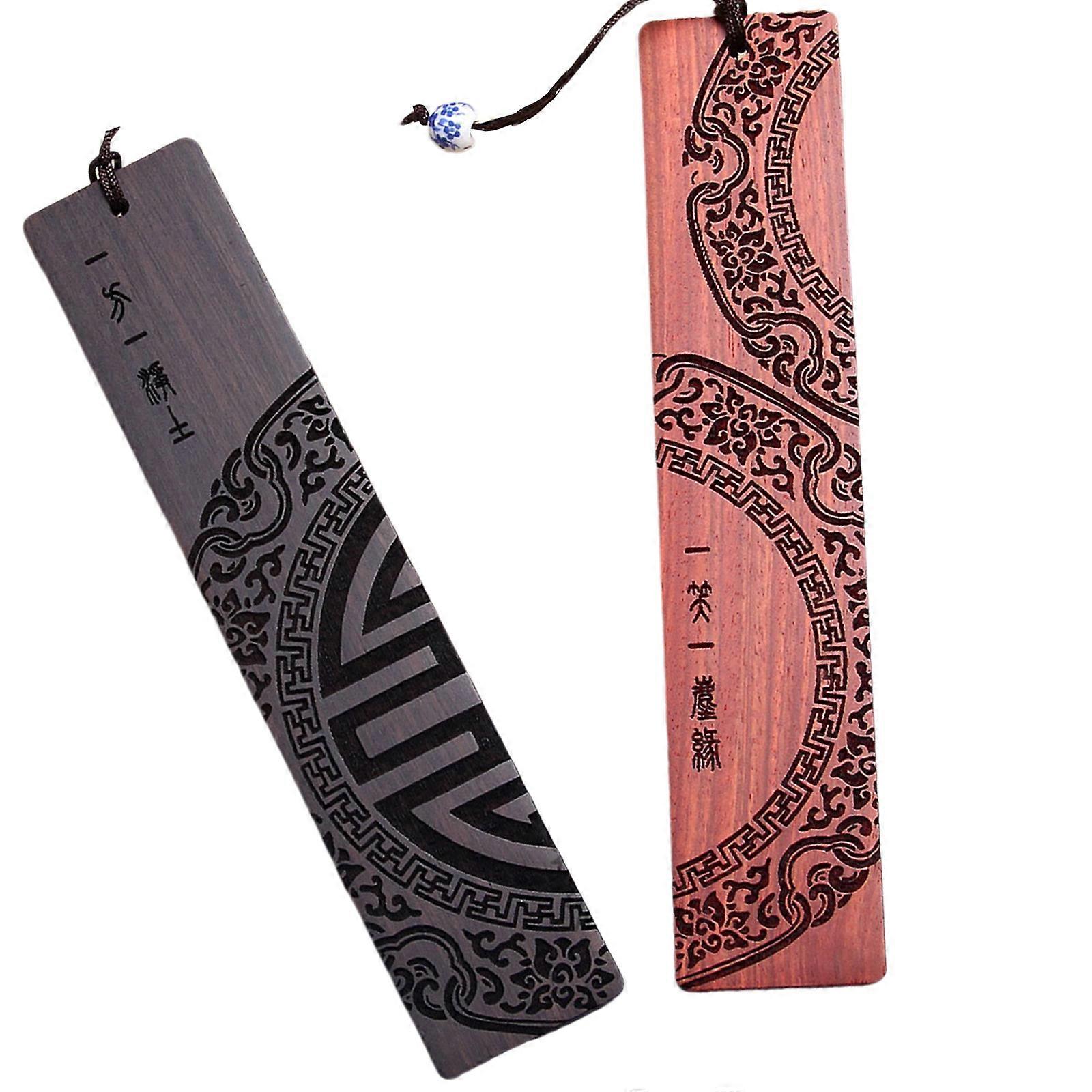 2Pcs Wood Bookmarks Book Page Marker Vintage Carved Bookmarks Reading Aids for Book Lover Student Adult Birthday Present Multicolor