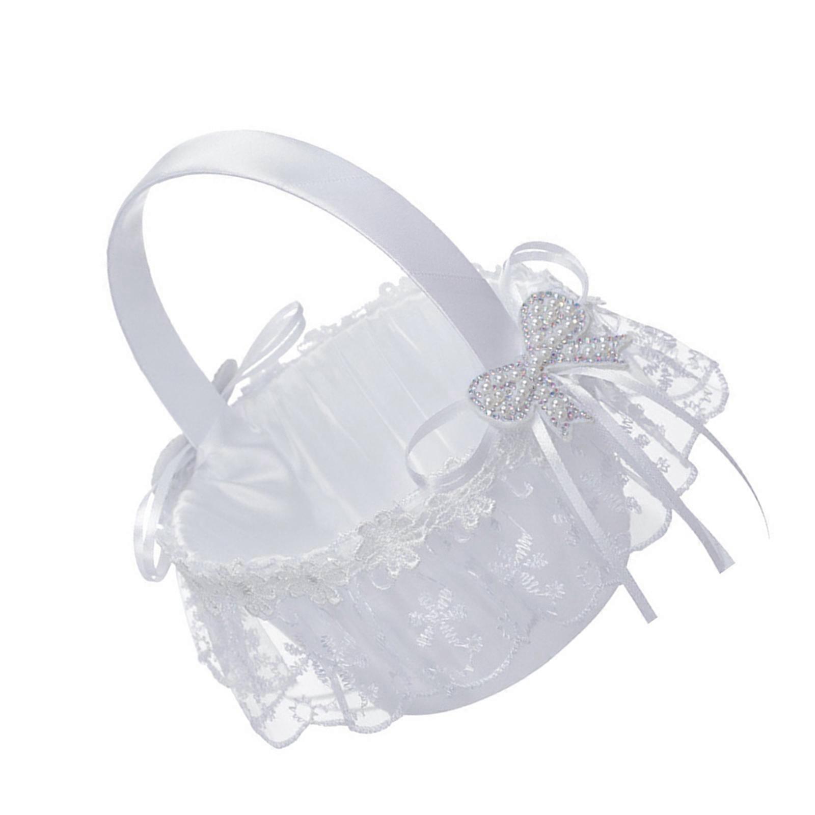 White Flower Girls Basket Simple Wedding Flower Basket Bride Hand Held Basket for Wedding Ceremony Multicolor