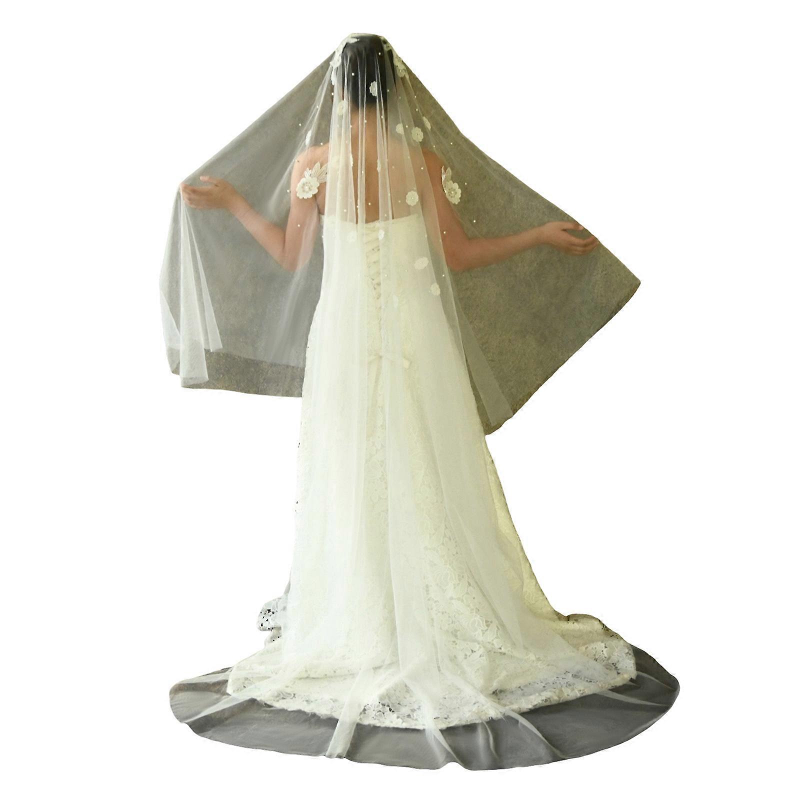 Delicate Pearls Accented Wedding Veils With Double Layer Tulle Bridal Headpiece For Ceremony Photo Props Ivory