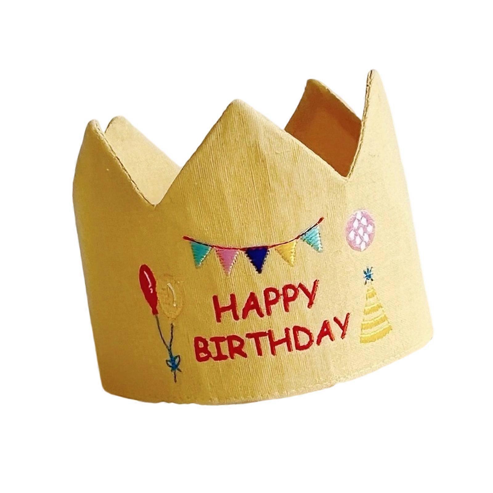 Embroidered Baby Birthday Crowned Soft Fabric Celebration Hat For Infants Toddlers Photoshoots Special Occasion Gift Yellow