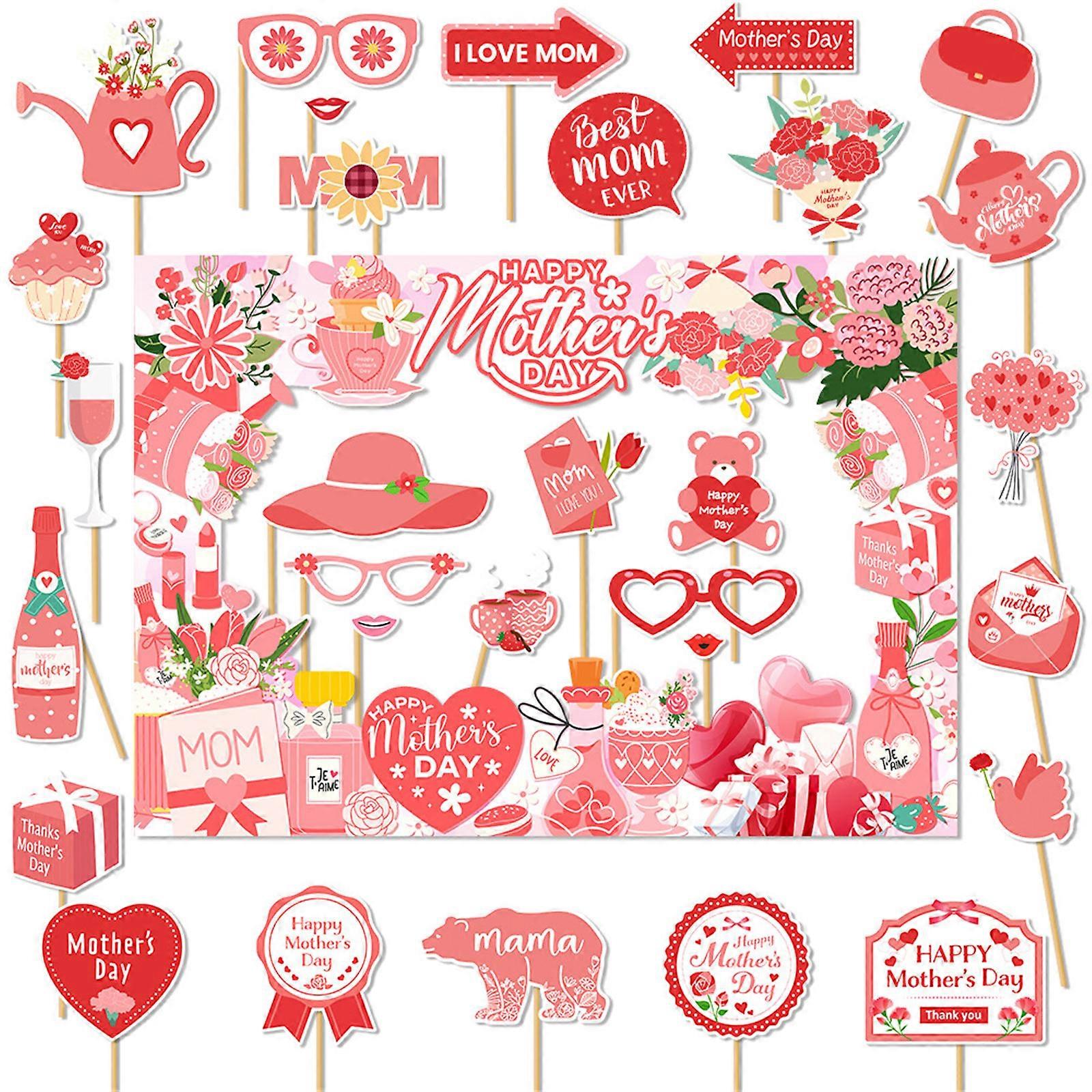 Mother's Day Photography Props with Florals Photo Frame and and Directional Signs Handmade Photo Booth Supplies Multicolor