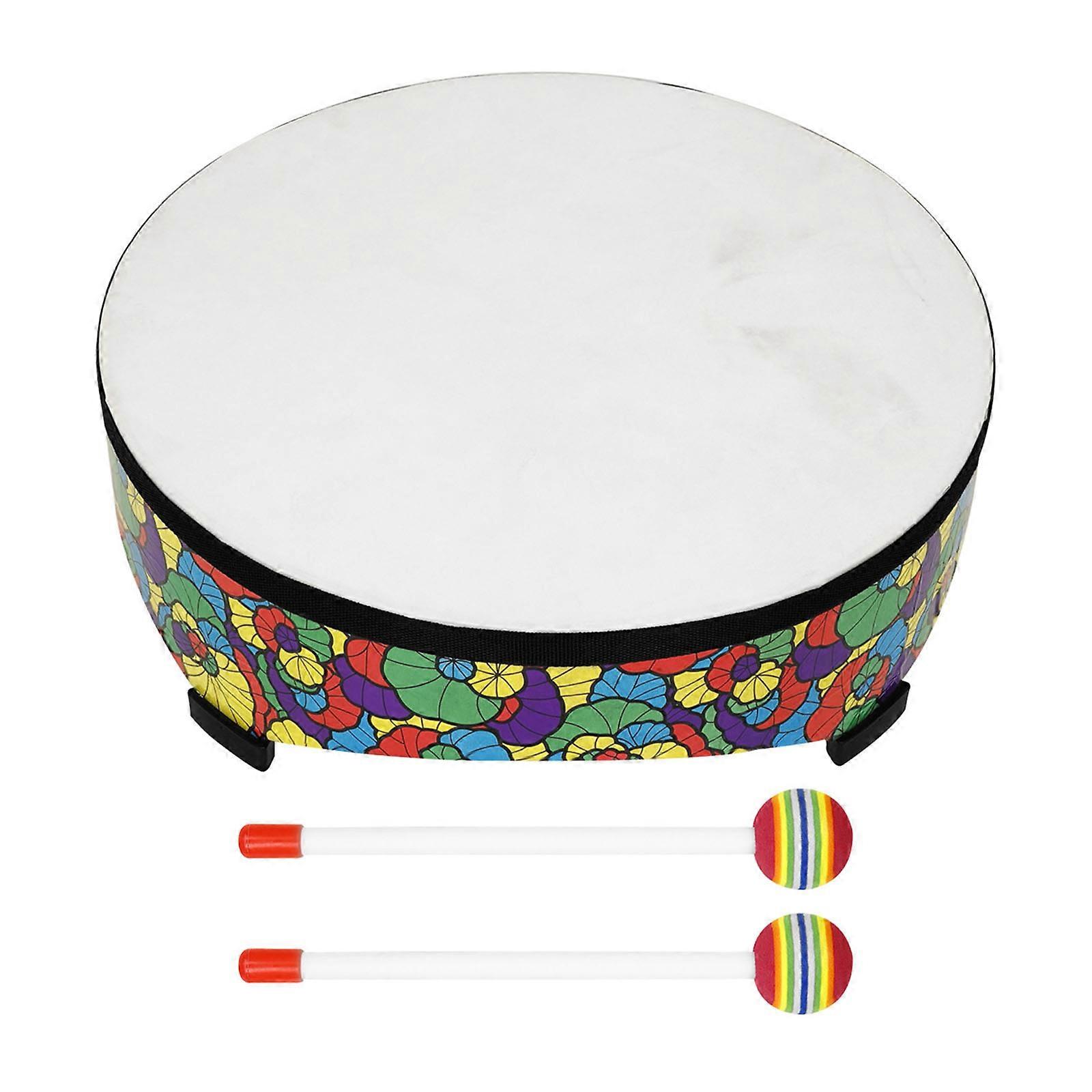 Ground Drum Sheepskin Applique Tambourine Handheld Percussion Instrument Child Educational Toy for School Bands Multicolor