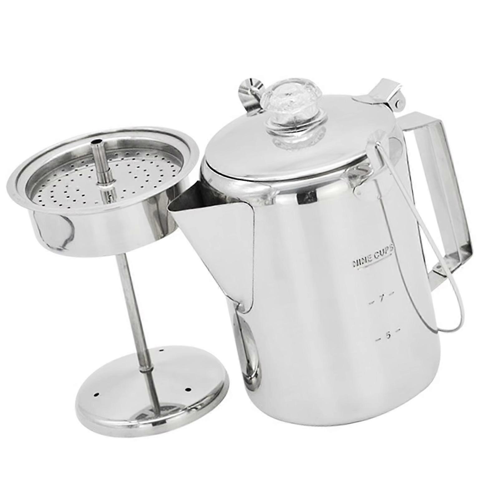 Easy Pouring Coffee Maker Hinged Lid Coffee Percolator 9 Cup Stainless Steel Coffee Pot for Camping and Home Use Multicolor