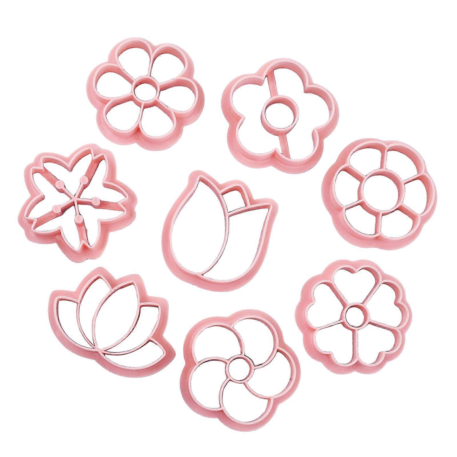 8pcs Flower Shaped Cookie Mould Biscuit Fondant Embosser Stamp for Wedding Party Plastic Cake Decorating Baking Supplies Multicolor