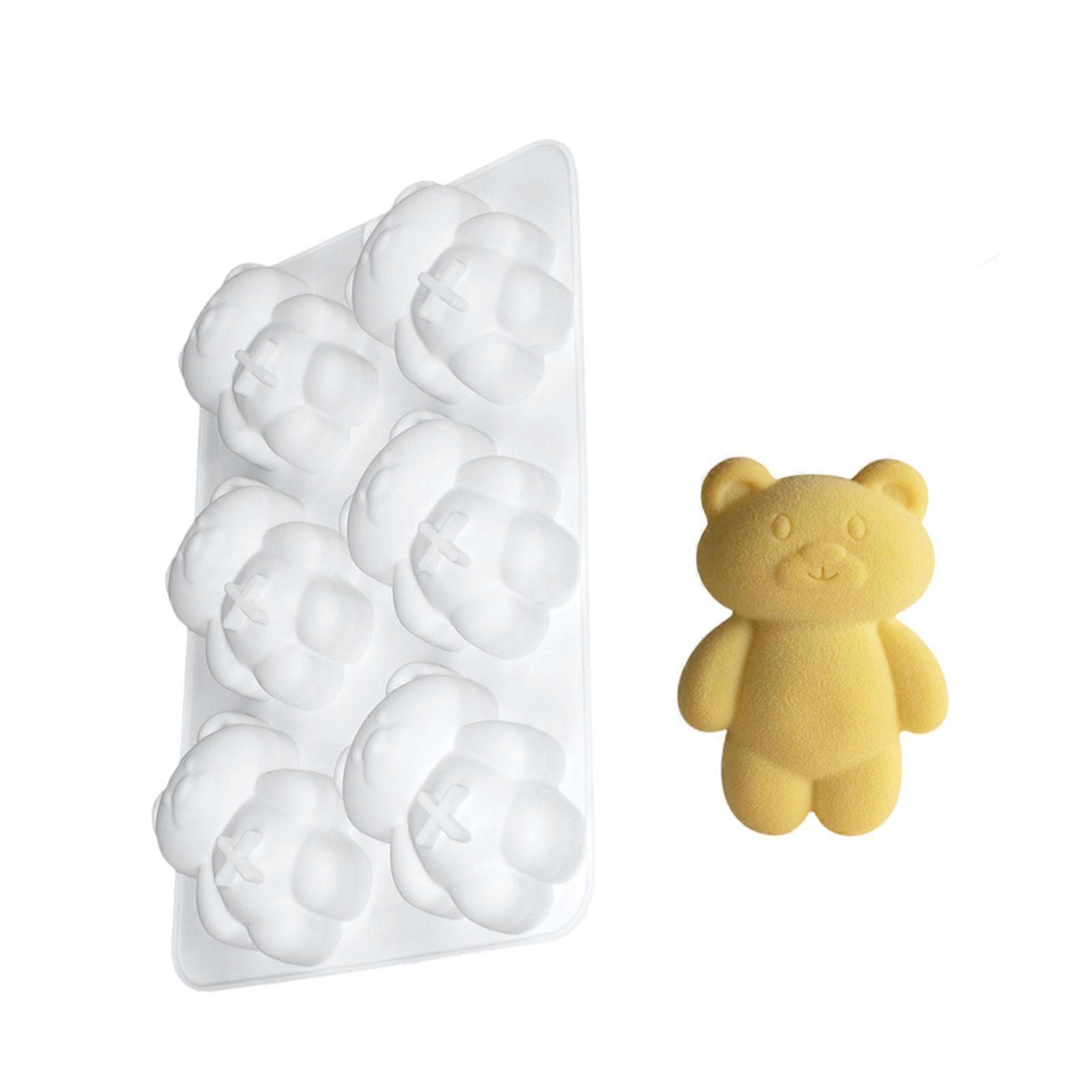 6 Grids Silicone Bear Shape Mold for Muffins and Chocolates Mousse Cake Mould Nonstick Bakewares for Family Gatherings Multicolor