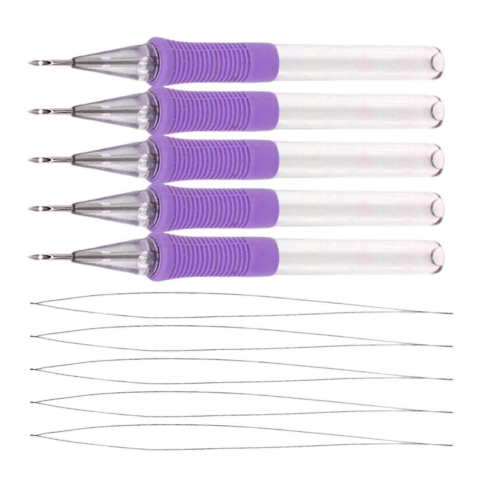 5Pieces Punching Needle Embroidery Pen with Needle Threader Punching Needle Tool ABS Embroidery Pen for Stitching Craft Multicolor