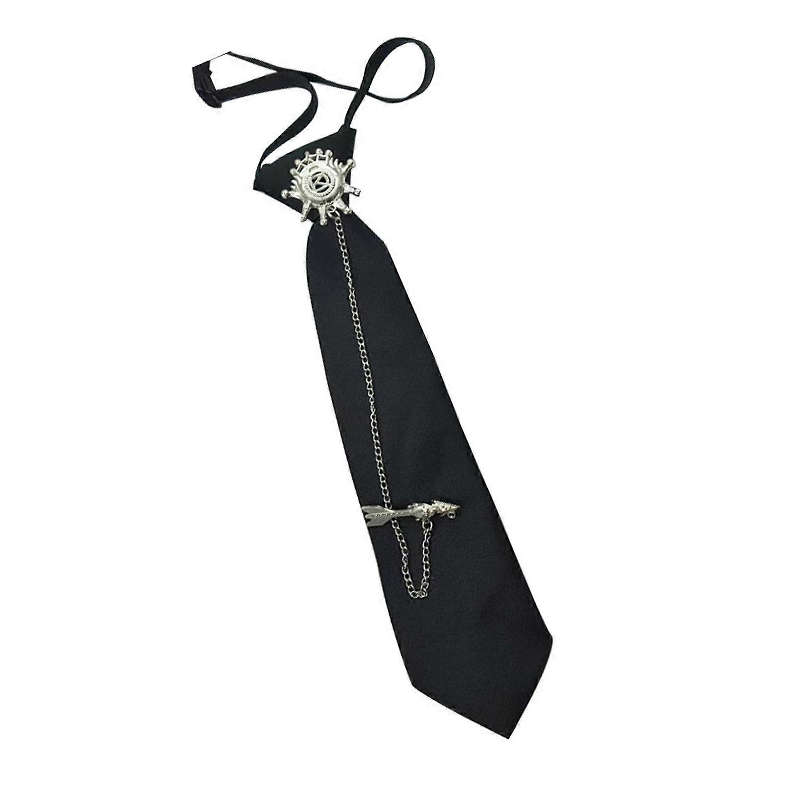 Punk Rock Adjustable Neck Tie For Casual Outfits and Cosplay Event College Aesthetic Metal Arrows Chain Pre Tied Tie Multicolor