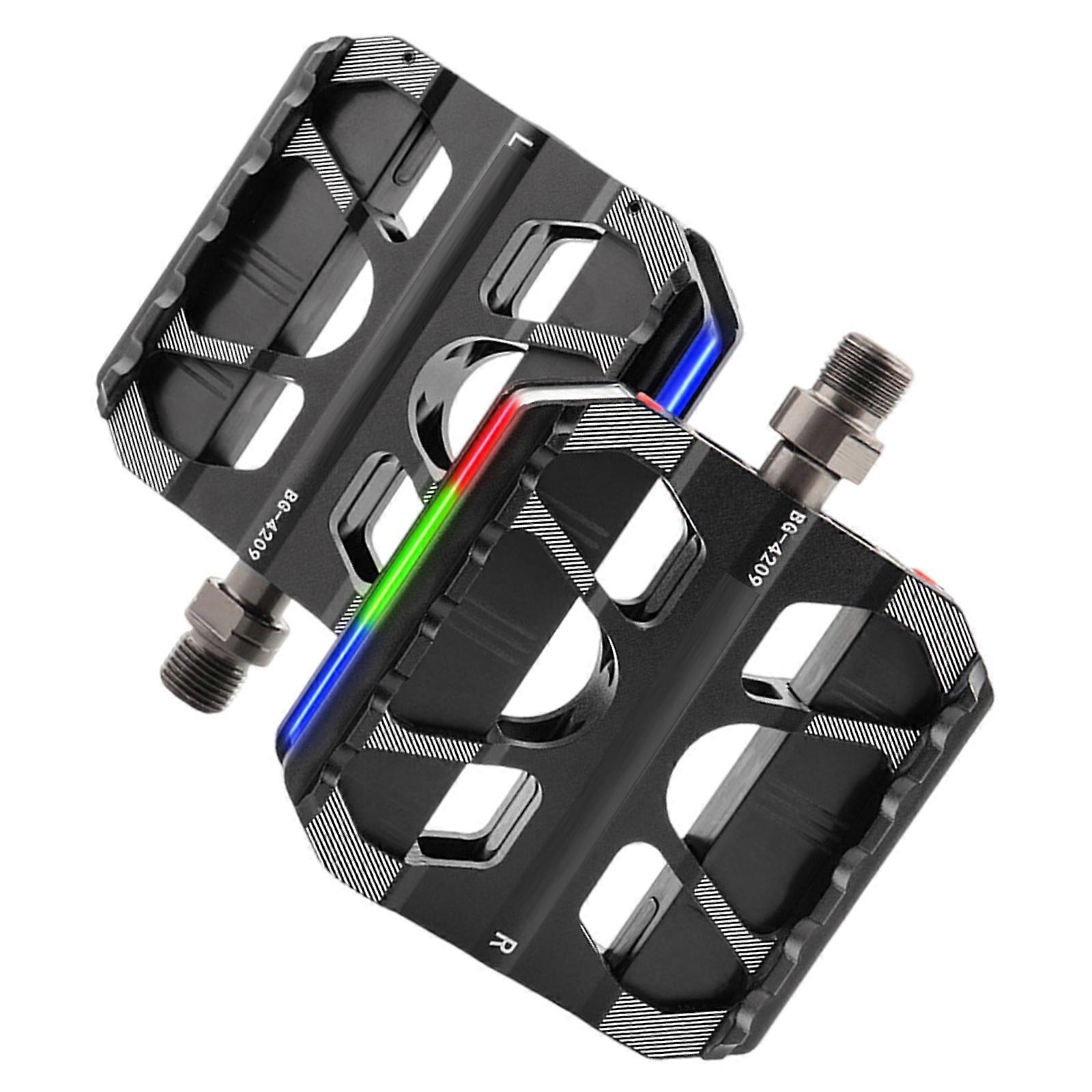 Bicycles Pedals Nonslip Wide Platform Bikes Flat Pedals 9/16Inch Thread Three Bearing 3 Bearings LED Light Bikes Pedals Multicolor