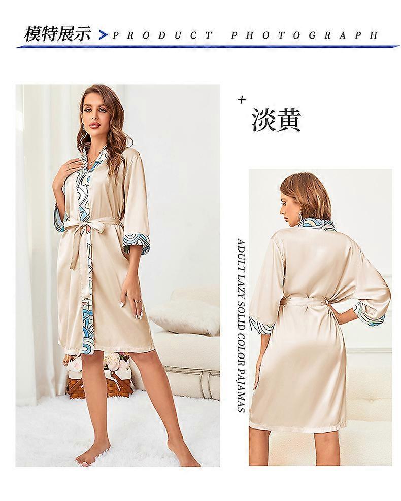 Women's imitation silk three-quarter sleeve bathrobe, silky smooth ice silk, high-end feel, knee-length bathrobe