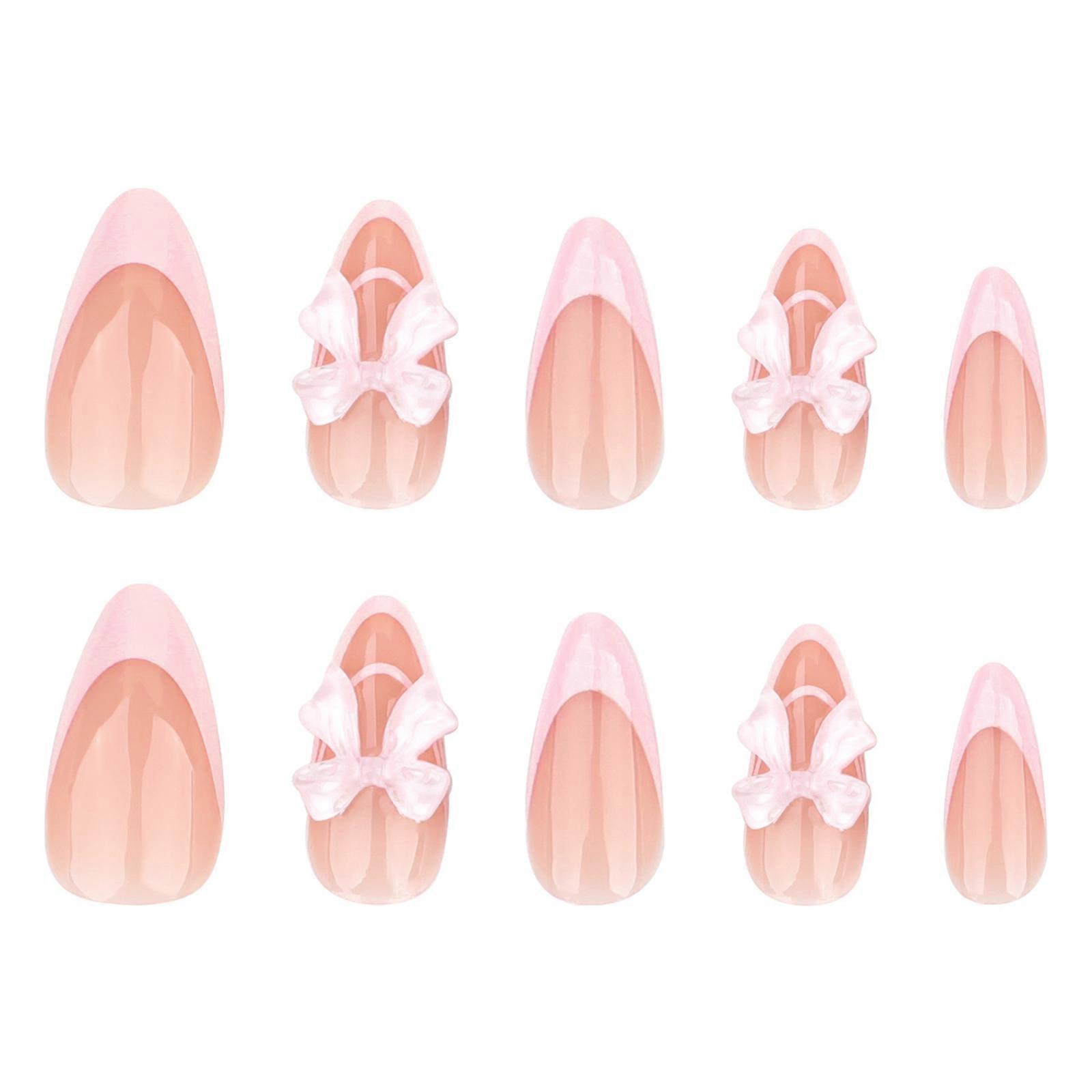 Elegant French Style Pink Almond Press On Nail With 3D Bowknot Designs Stick on Nail For A Sweet And Stylish Look Multicolor