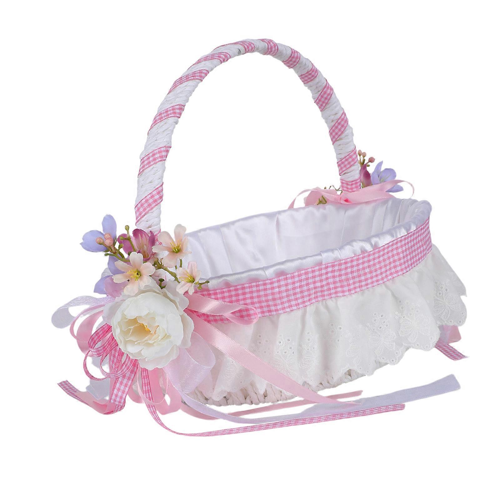Decorative Woven Basket With Artificial Flower Portable Wedding Birthday Party Decoration Table Centerpiece Pink B