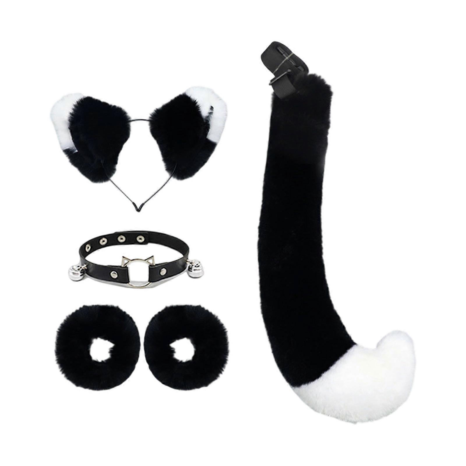 Professional Cosplay foxes Maid Outfit With Realistic Tail Ears High Quality Faux For Conventions Parties Black and white