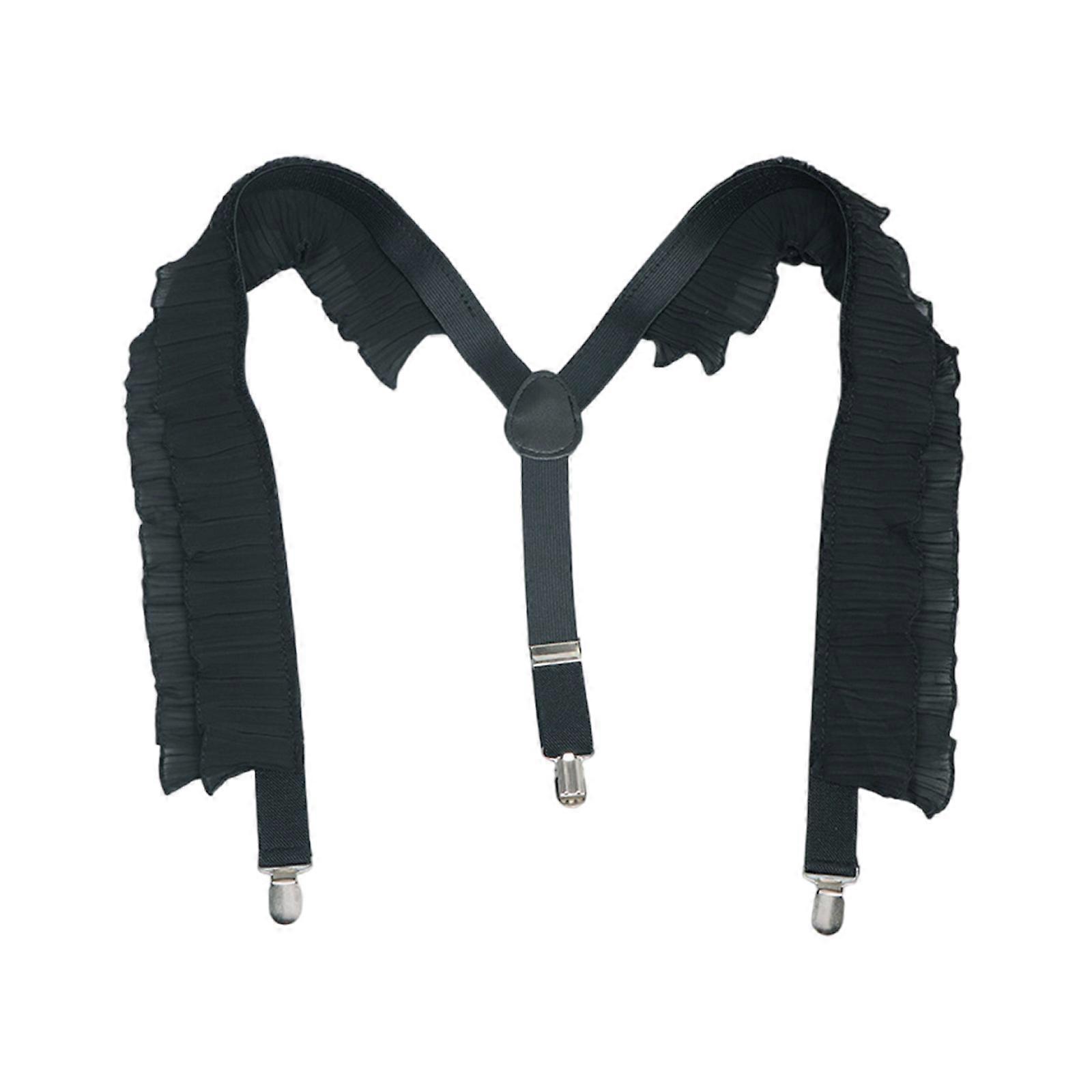 Stylish Ruffle Suspenders Ruched Suspenders Elastic Chain Metal Clip Dark Elastic Belt for Birthday Wedding Unisex Wear Multicolor