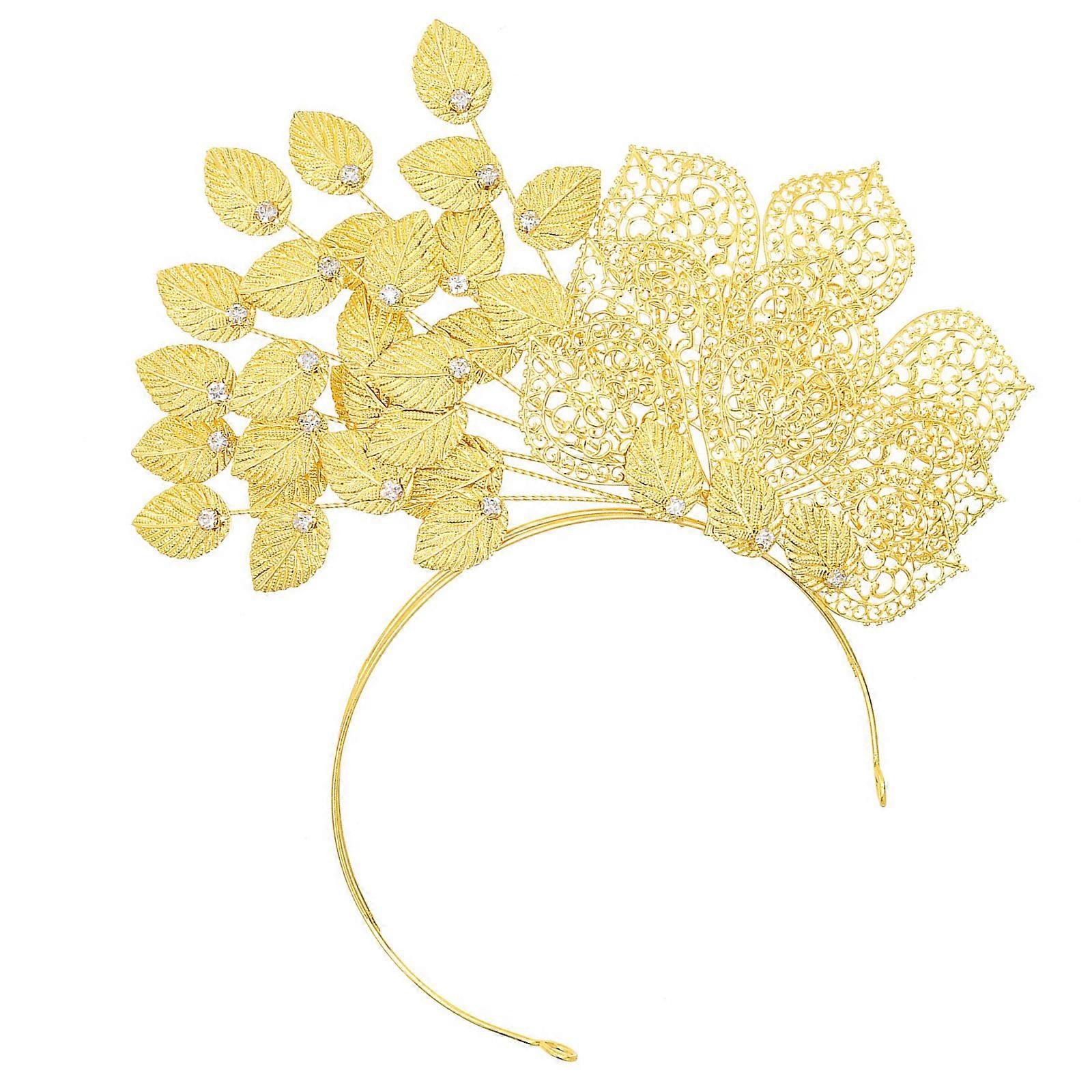 Sparkling Flower and Leaf Headband for Bride Malay Wedding Headpiece Music Festival Hairhoop Party Props Crownpiece Multicolor