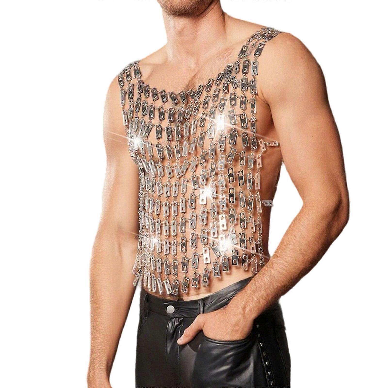 Luxury Acrylic Mirrored Body Chain Mesh Party Vest For Men Hollow Out Design Tank Top Perfect For Nightclubs Event Silver XL
