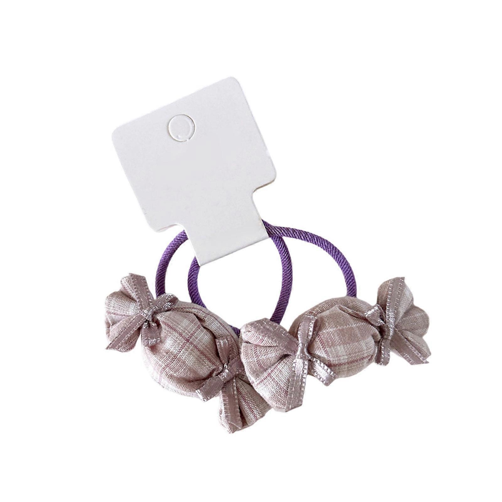 1 Pair Sweet Plaids Fabric Hair Elastics For Kids Gentle Stretchy Bands Nonslip Design Everyday School Play Outfits Purple