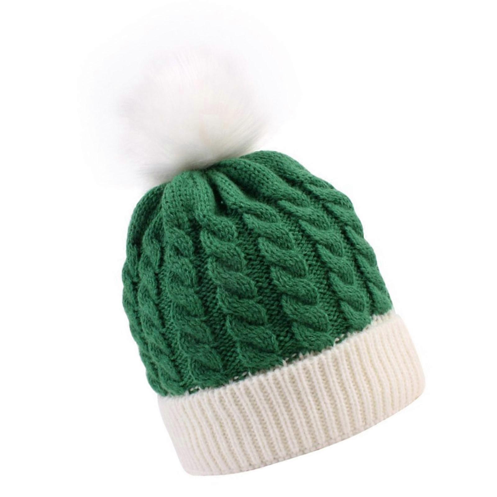 Festival Knitted Hat for Baby, Winter Warm Bonnet Caps Fashionable Hat Headwear for Christmas Parties and Cold Weather White Green