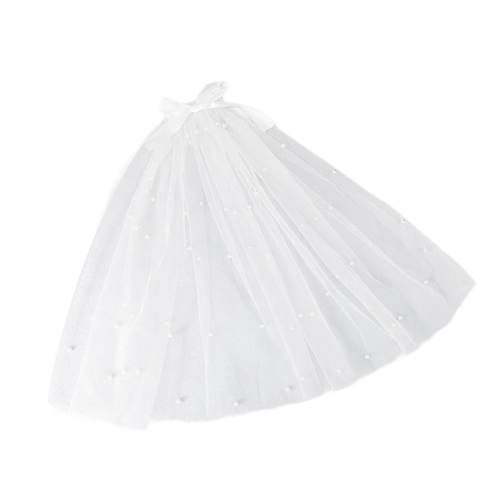 Bridal Veils Pearls for Pageant Prom Headwear Elegant Mantilla Girl Headpiece Photo Props Single Layer Veils White