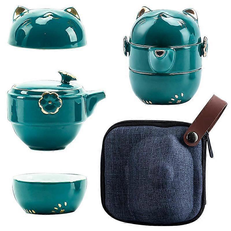 Lucky Cat Ceramic Tea Cup Set, Porcelain Teapot Set with Tea Strainer Shockproof Storage Case, Suitable for Travel Outdoor Picnic Office Wor