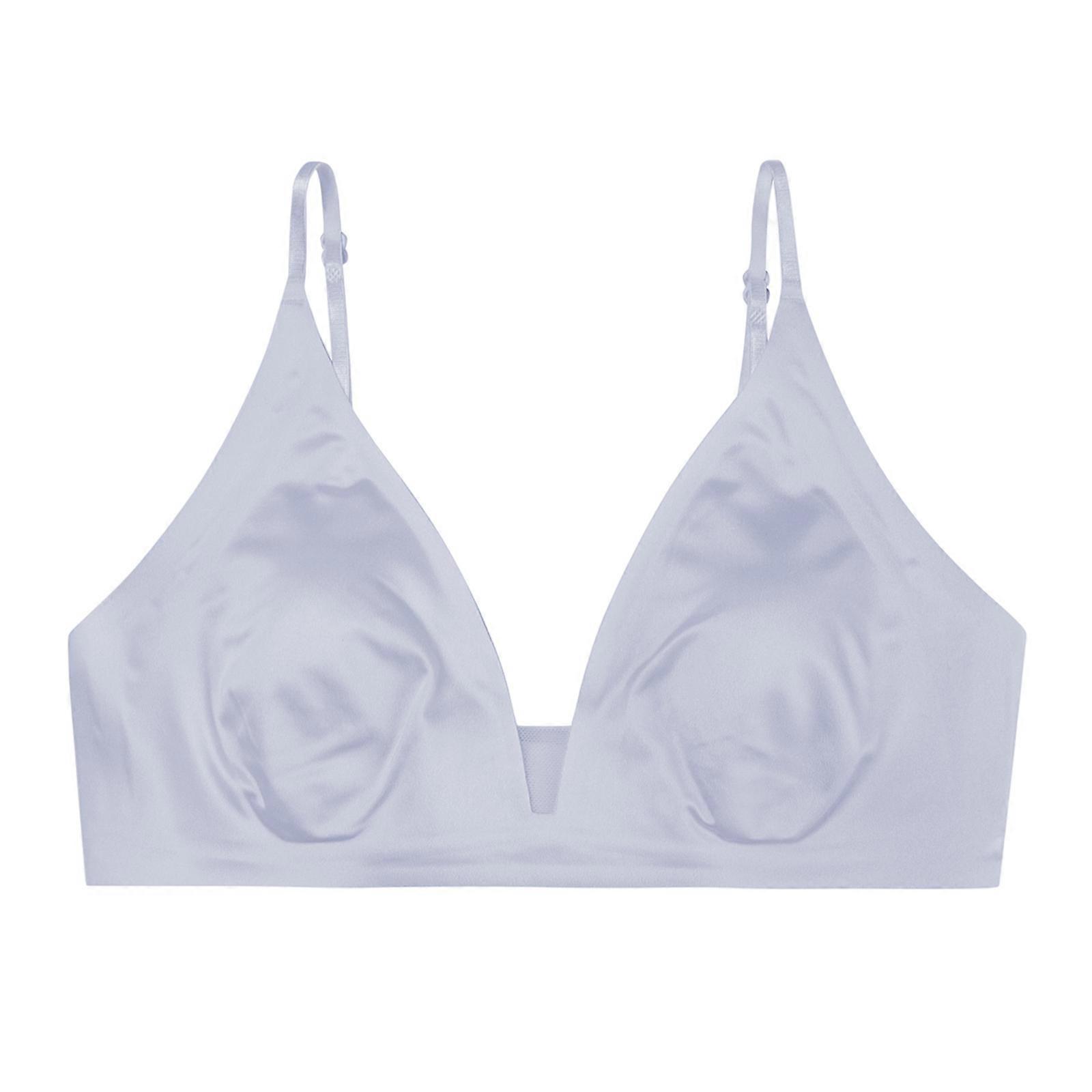 Invisible Wirefree Bralette Women’s Ultra Soft Nylon Underwear Thin Cup Satins No Show Coverage Deep V Neck Bras Top Gray blue XL