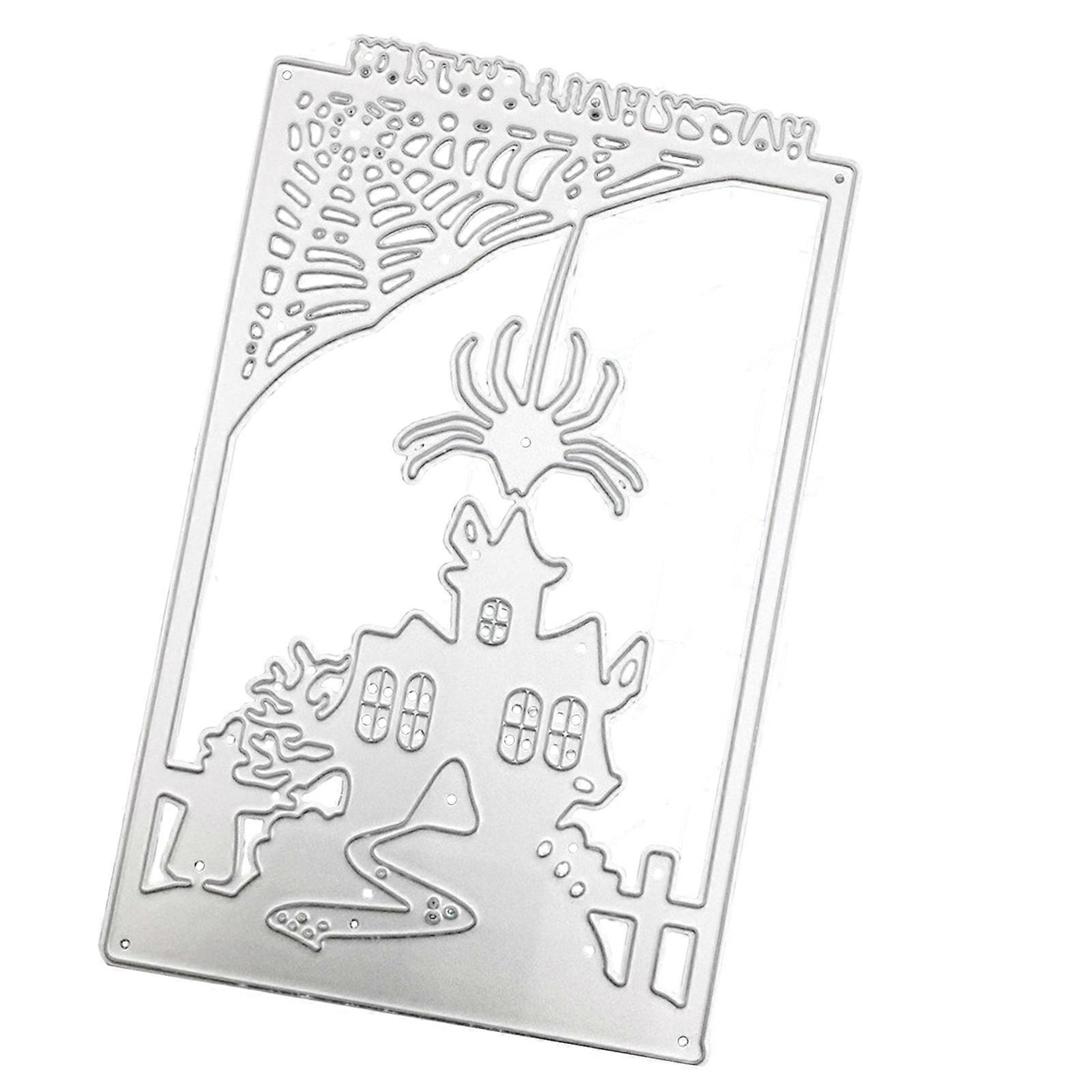 Halloween House Cutting Dies Halloween Embossing Die Cut Stencils Carbon Steel Cutting Dies for Scrapbooking Card Making Multicolor