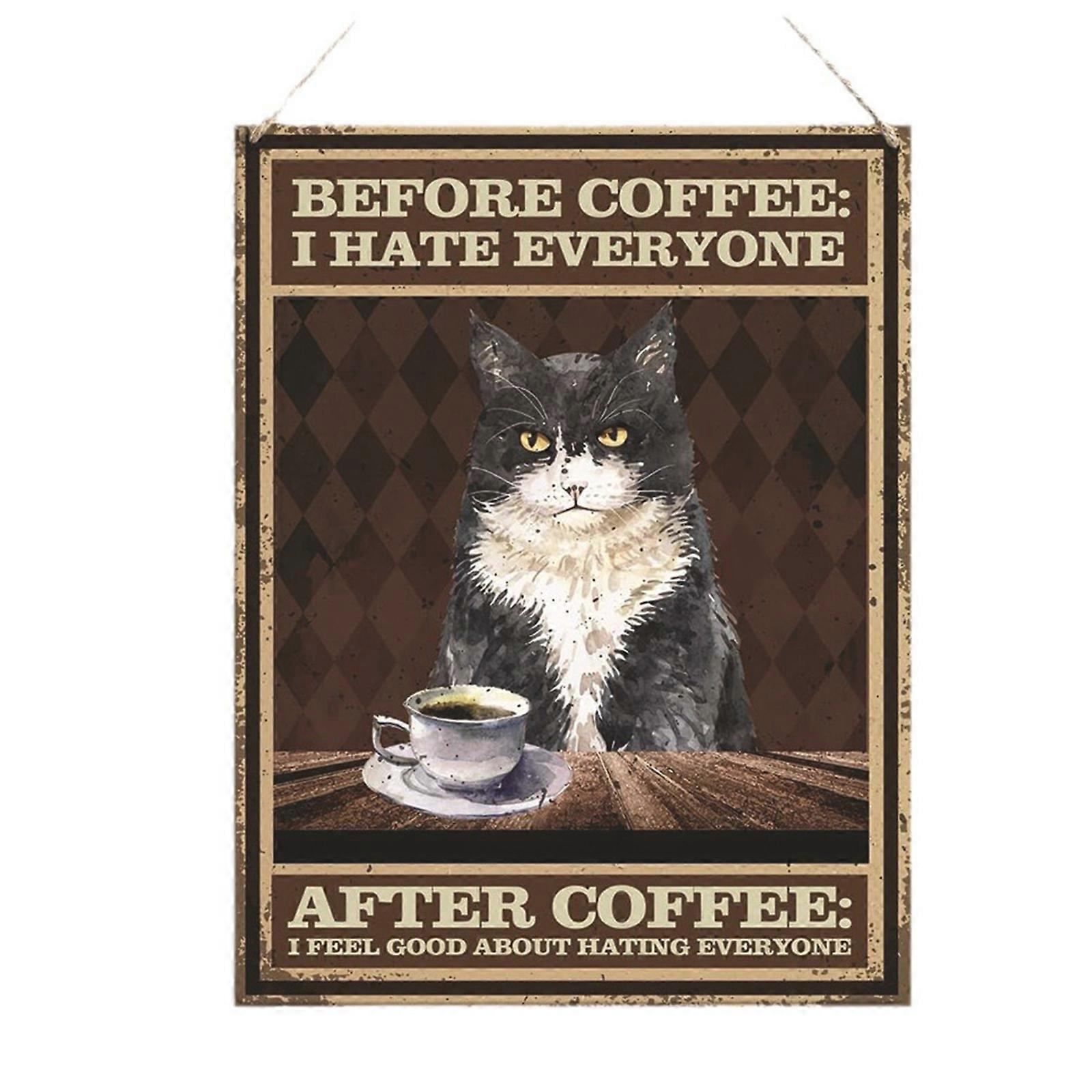 Vintage Black Cats Wood Sign Animal Coffee Letters Hanging Plaques Wall Decors for Country Setting Home Decoration Multicolor
