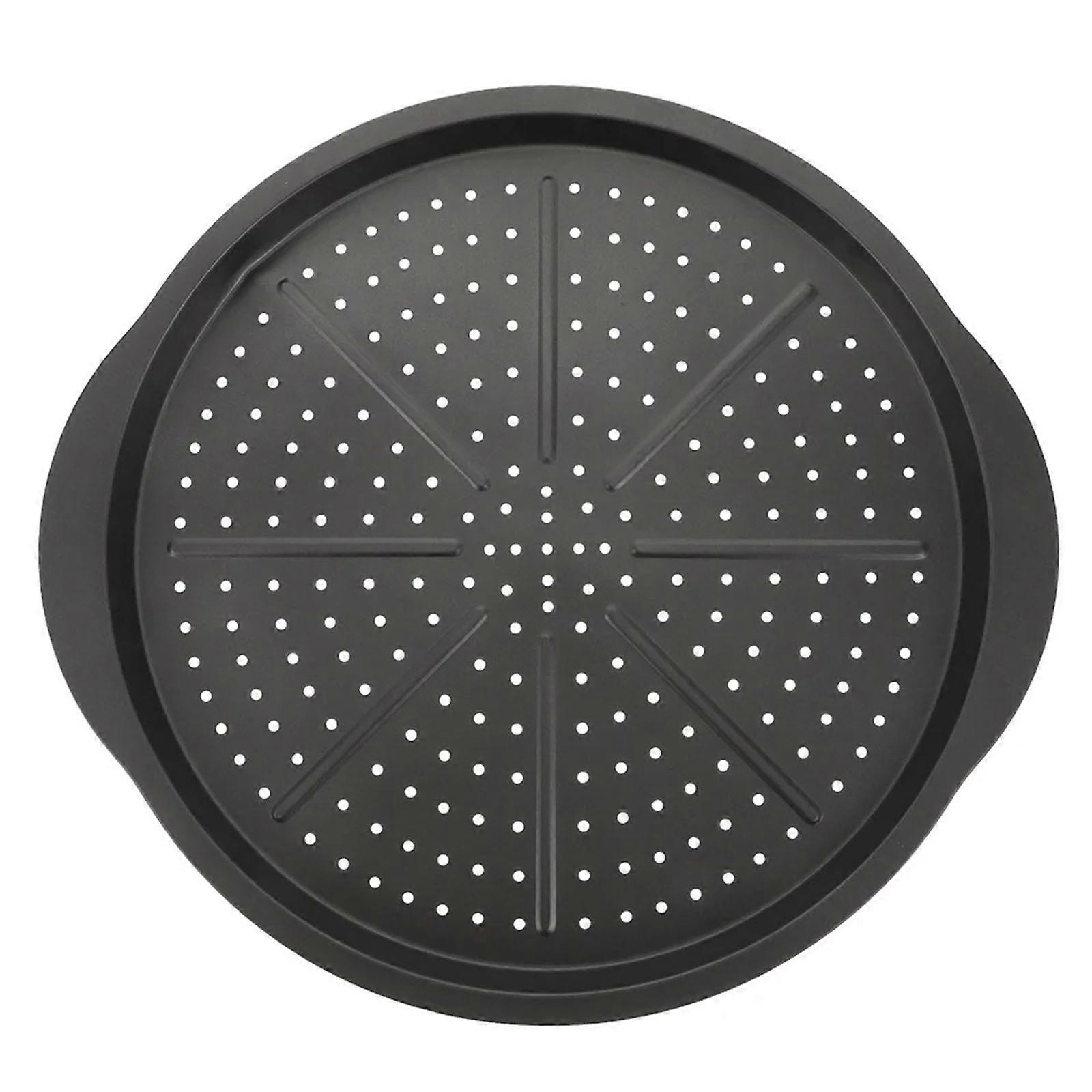Round Perforated Pizza Pan 15Inch Carbon Steel Nonstick Coating Even Baking Sheet with Handle Oven Safe Cooking Tray Multicolor