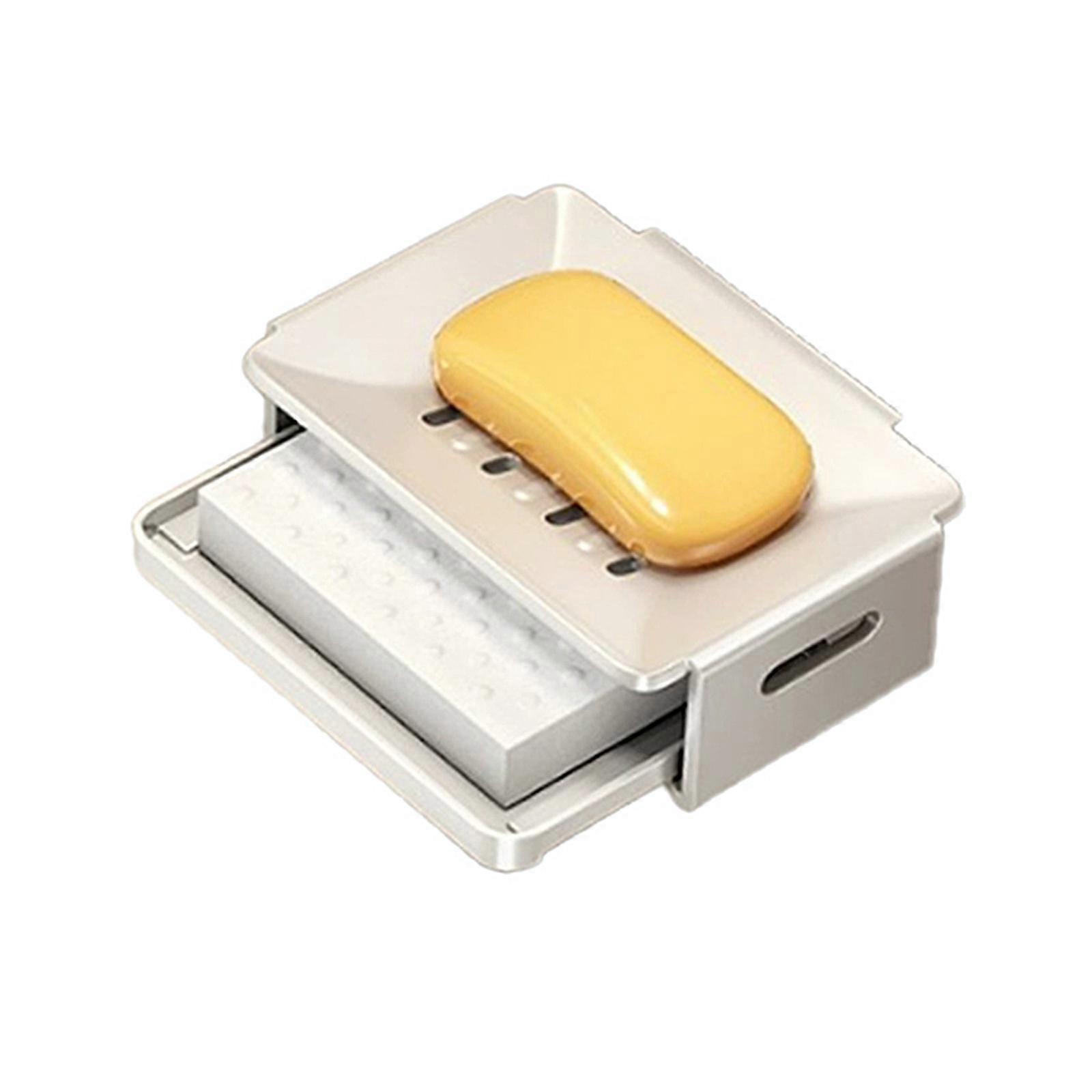 Space Saving Bathroom Soap Dish AluminumWall Mountable without Drilling Quick Drainages Home Essential Simple Installs Mellow white