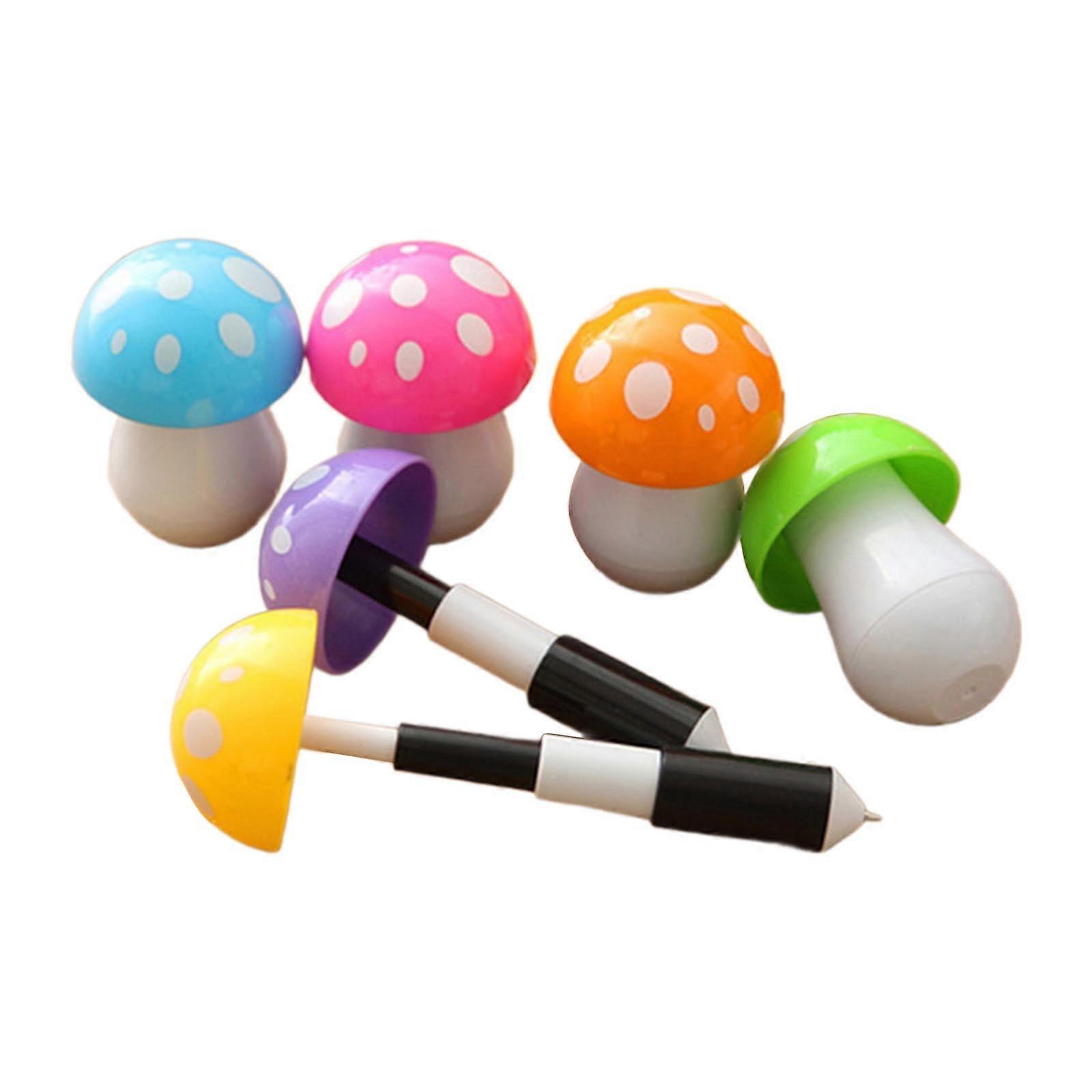 6Pcs Mushroom Ballpoint Pen Telescopic Ballpoint Pen Funny Writing Pen for Student Class Reward Multicolor