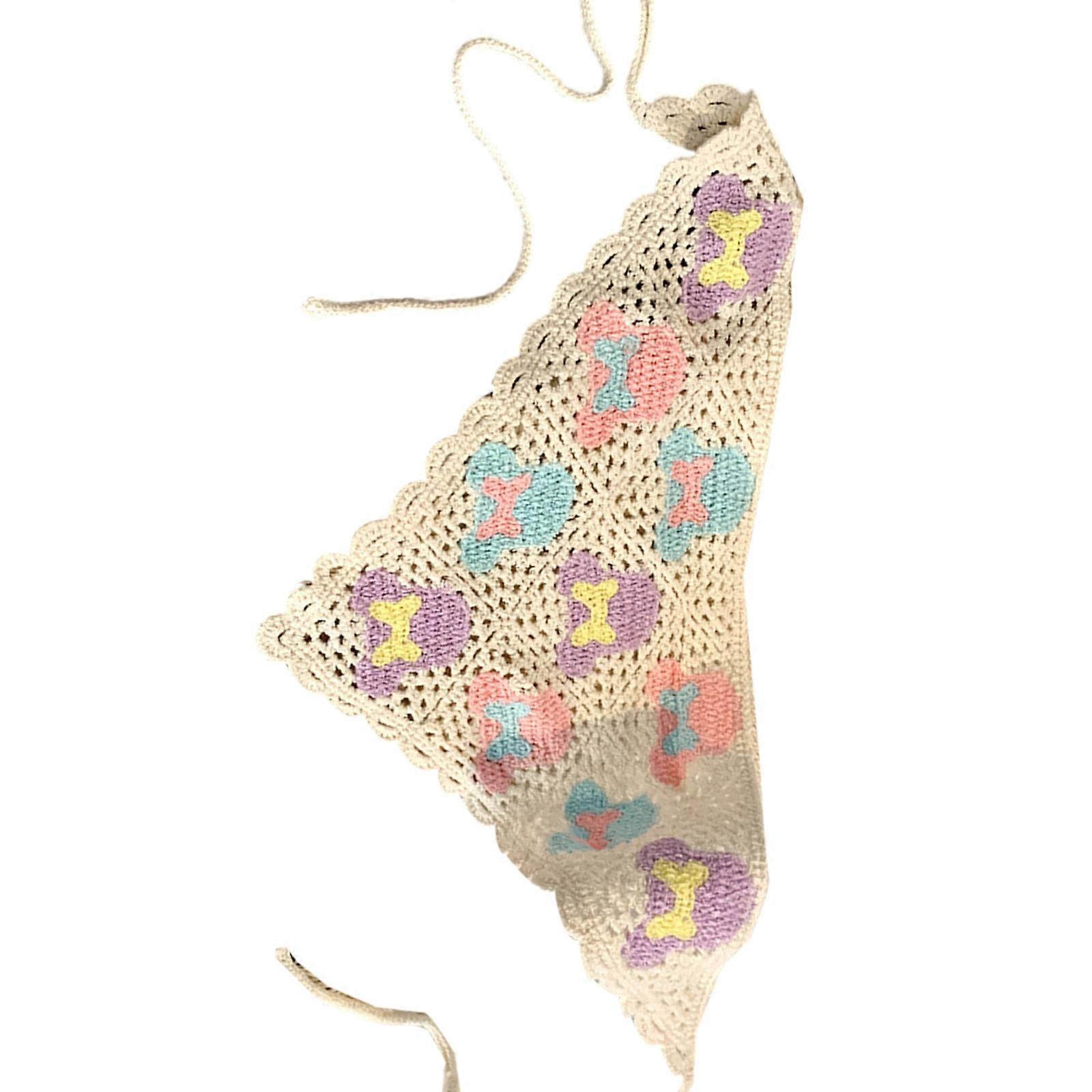 Cute Floral Bandana Hairscarf Head Wrap Handmade Headwear Headscarf Elegant Lacework Laciness Multicolor