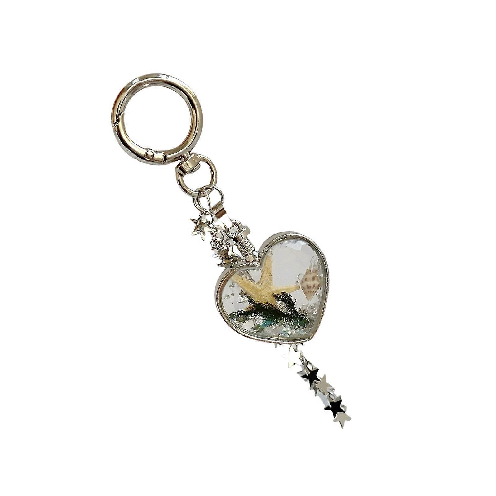 Unique Ocean Inspired Heart Keychain Gift Set With Intricate Seashells Starfish Design And Glossy Finish Multicolor