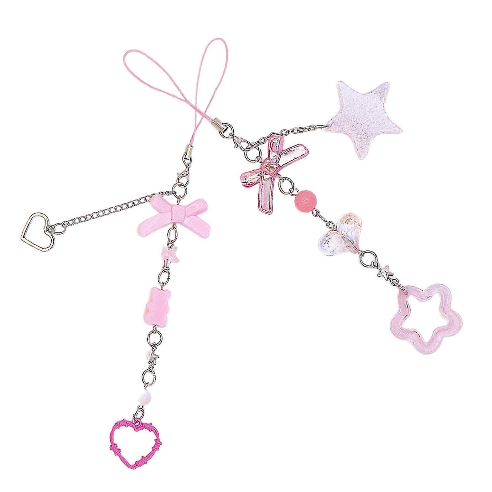 Handmade Bowknot Phone Jewelry Pink Phone Charm Cute Phone Strap Acrylic Material Bear Bag Pendant Gift for Everyday Use Multicolor