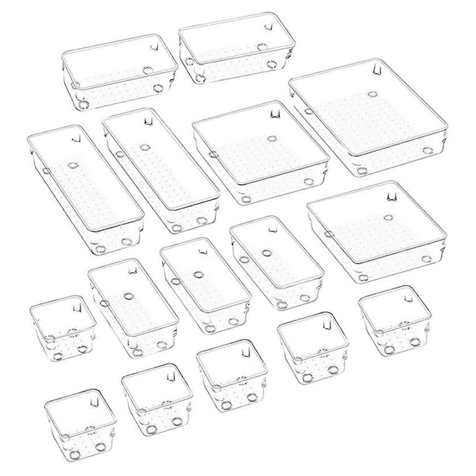 16Pcs Clear Drawer Organiser Set Bathroom and Vanity Drawer Organiser Dividers Drawer Storage Bin for Kitchen Utensils Multicolor