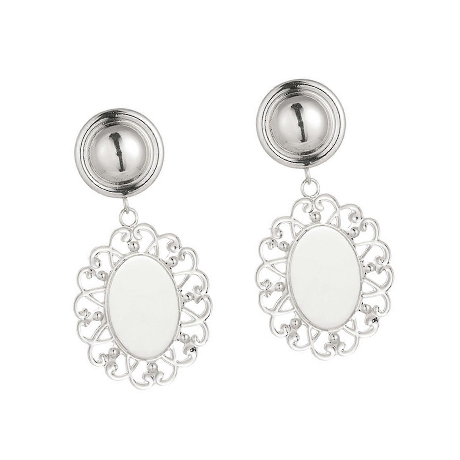 Hollow Out Oval Studs Earrings Antique Inspire Fashion Jewelry Comfortable Daily Wear Alloy Materials Silver
