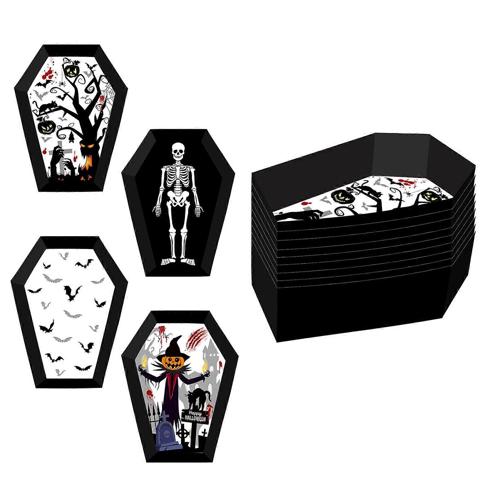 Kids Friendly Halloween Coffin Trays 12 Pack Not Toxic Cardboard Bat Pumpkin Design Party Decoration Supplies Multicolor