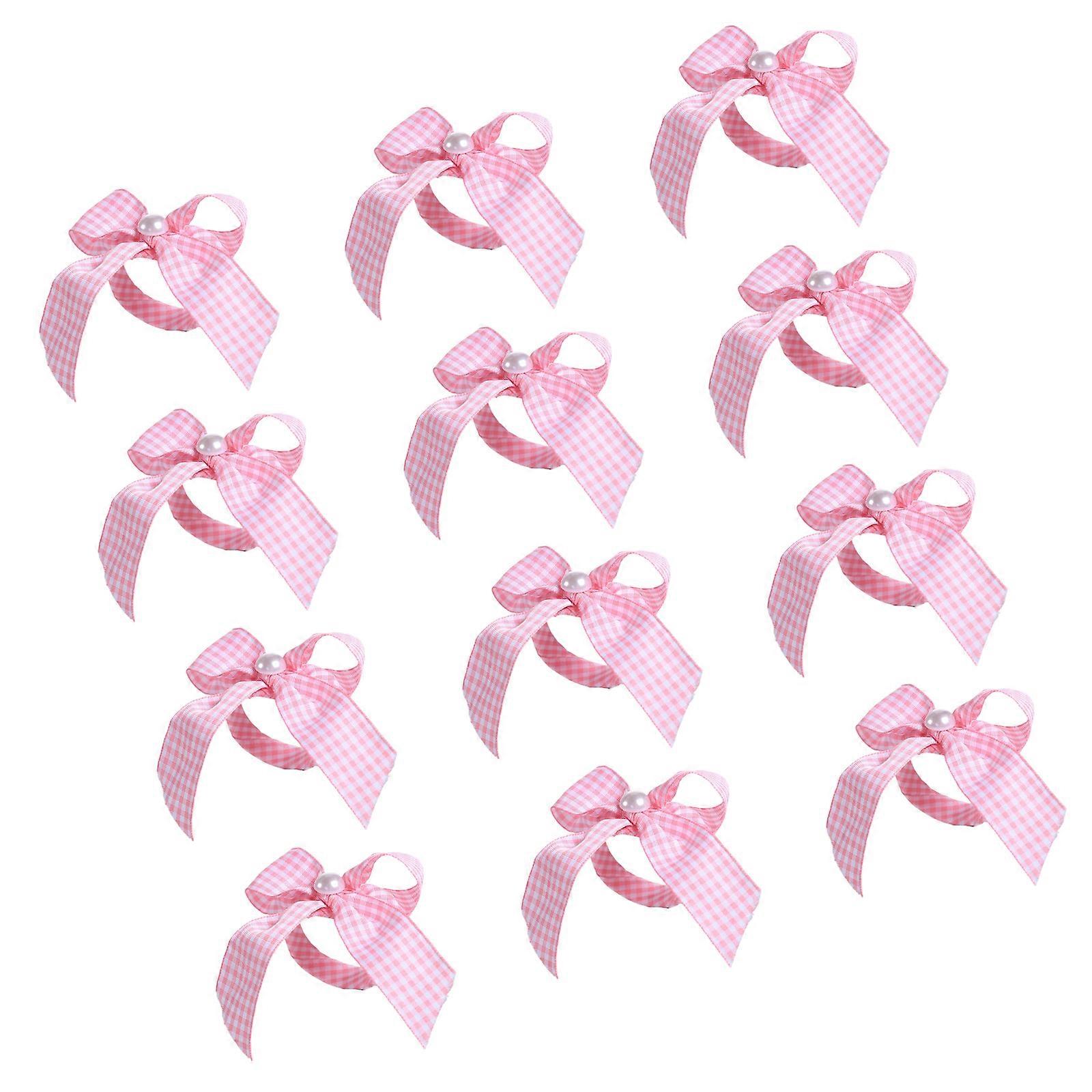 12Pcs Striped Bowknot Tie Napkin Rings Satins Fabric Pearls Embellishment Dining Table Decoration Desktop Accessories Multicolor