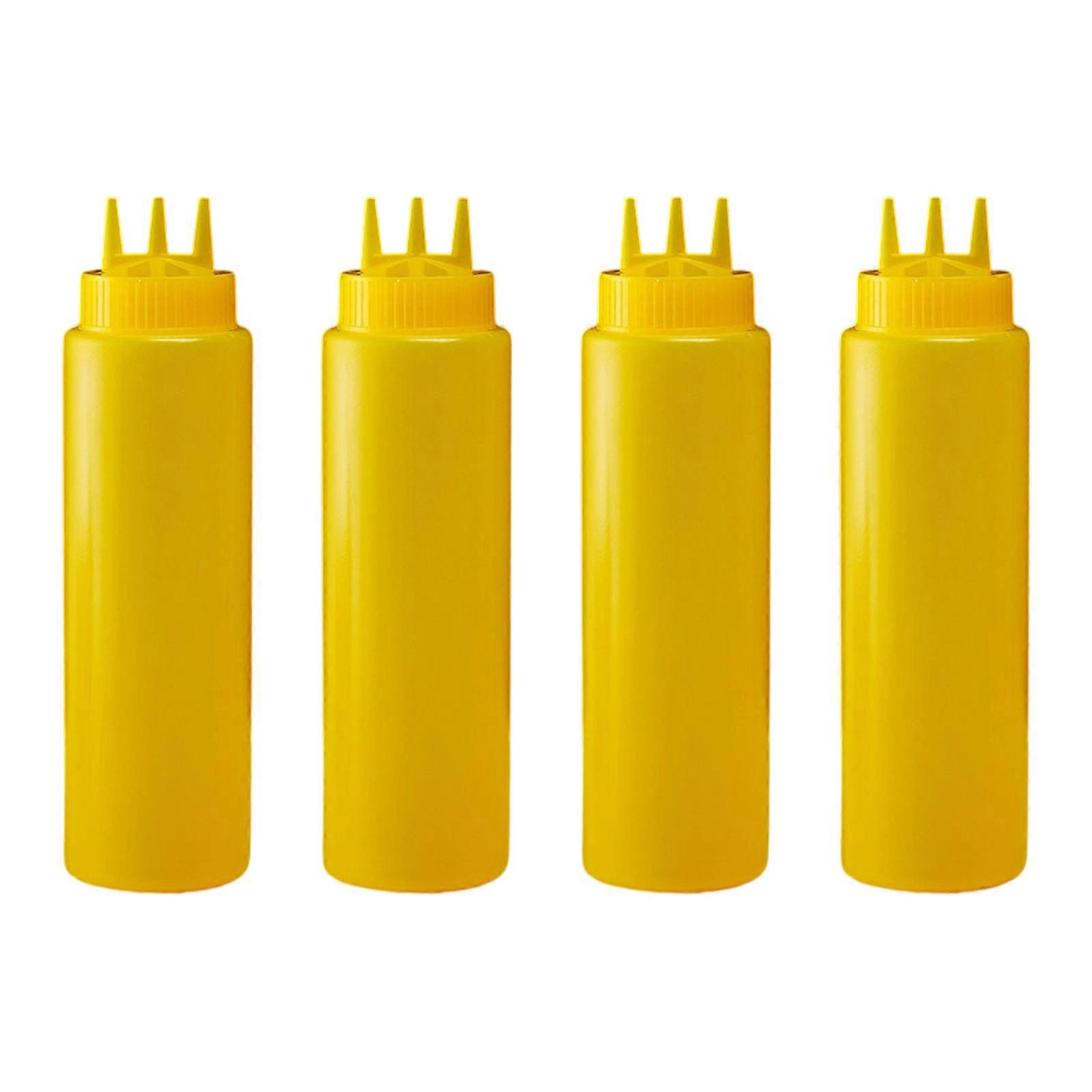Strong Trilateral Nozzle Dispenser Bottles 4PCS Easy Disassemble Kitchen Accessories Never Bisphenol Plastic For Dressings Syrups Yellow
