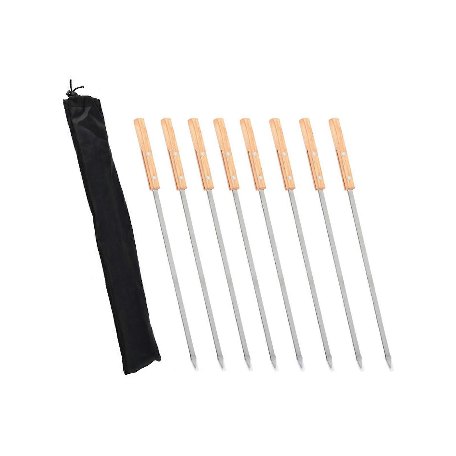Pack Of 8 Stainless Steel Flat BBQ Skewers With Wooden Handle For Grilling Meat Vegetables Seafood Barbecue Accessories Multicolor