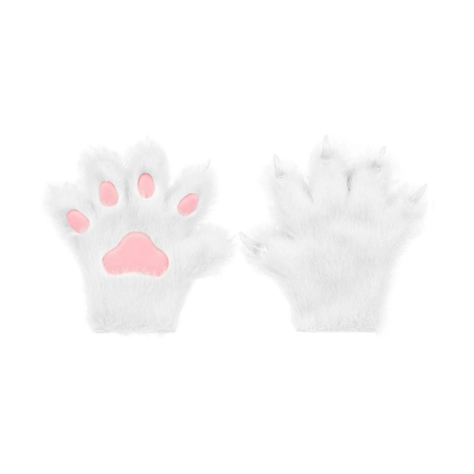 Eye Catching Furry Cats Claw Gloves Soft Warm Handwear For Themed Parties Winter Cosplay And Anime Performances White