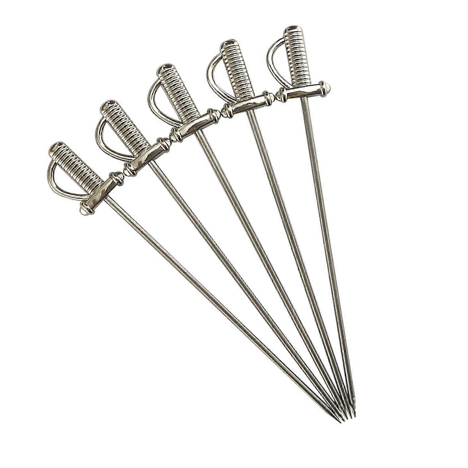 Pack Of 5 Rustproof Stainless Steel Skewers Portable Cocktail Picks Elegant Blade Design For Fruits Appetizers Multicolor