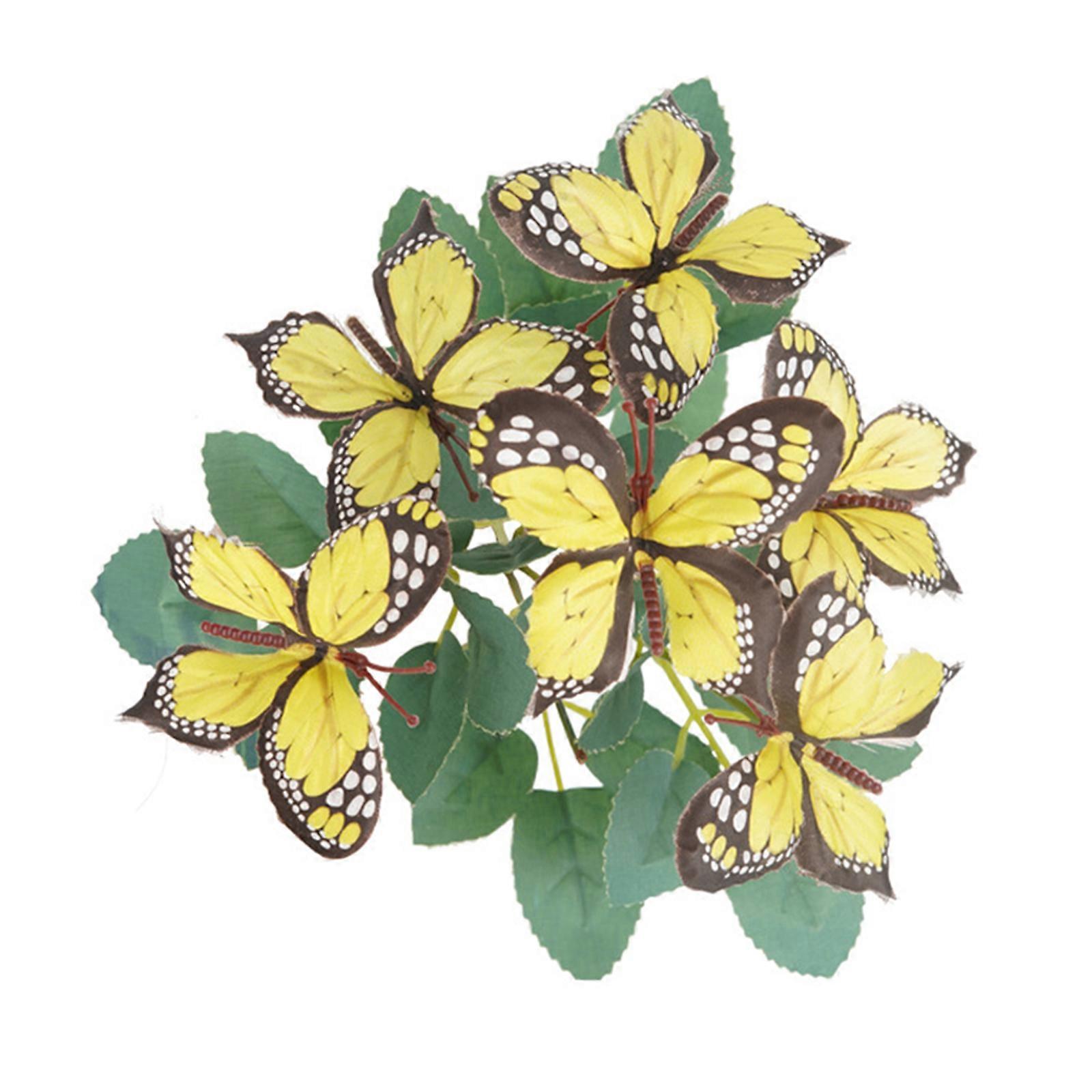 Realistic 7 Head Plastic Butterfly Flowers With Flexible Stem For Customizable Home Office Wedding Party And Special Decorations Yellow