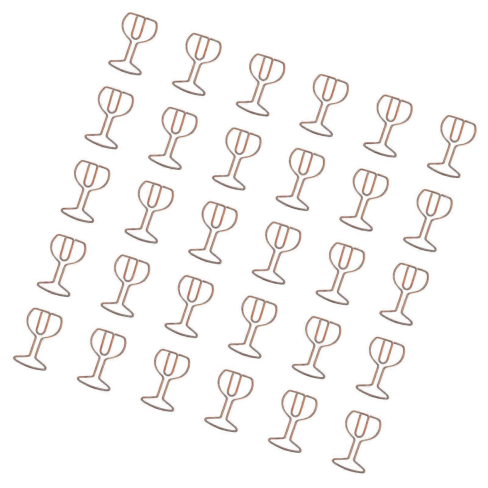 30Pcs Wine Glass Shape Metal Paper Clip Book Paperclips Metal Paper Clamp For Document File Paper Photo Organization Rose Gold
